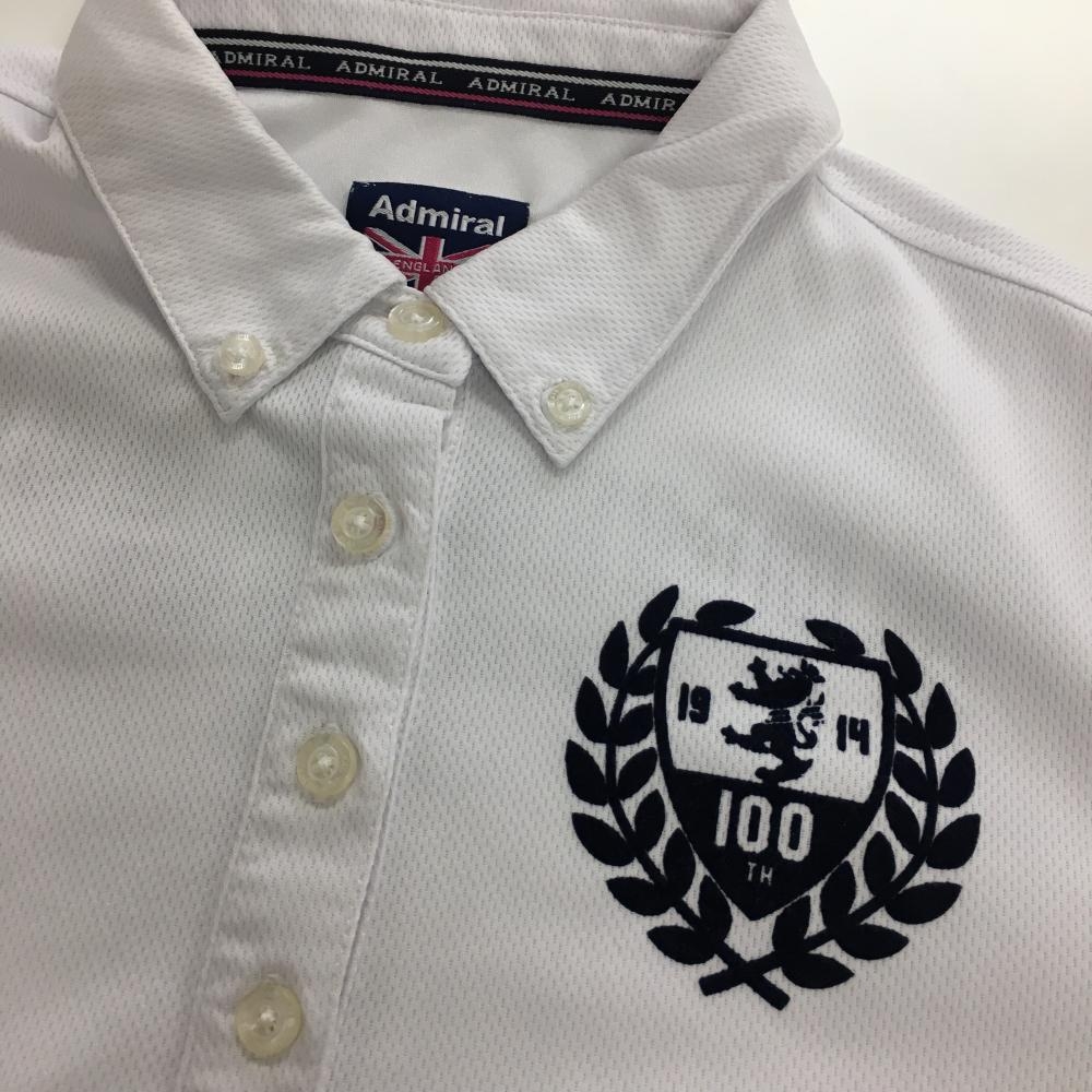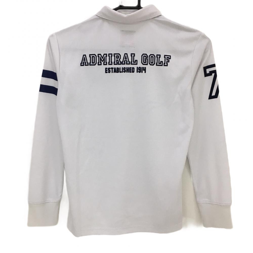 アドミラル 長袖ポロシャツ 白×ネイビー ボタンダウン レディース M ゴルフウェア Admiral