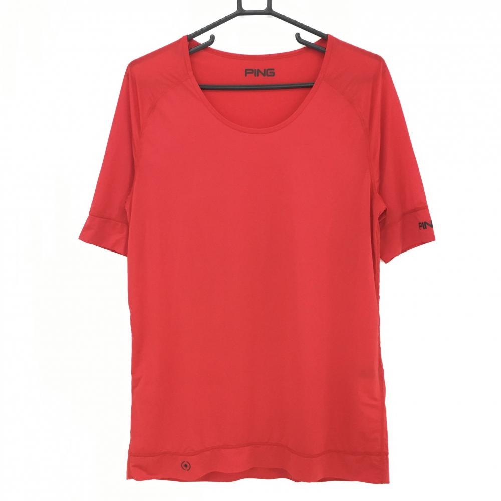 【超美品】ピン 半袖インナーシャツ レッド Uネック ロゴプリント メンズ L ゴルフウェア 2021年モデル PING