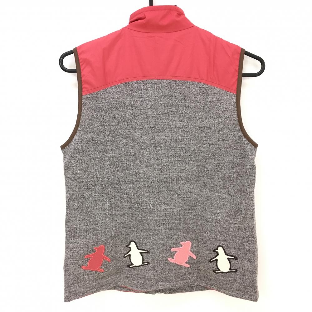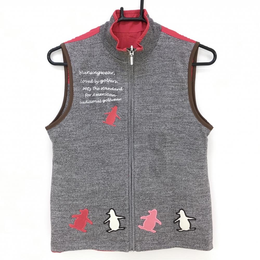 マンシングウェア アウターベスト ピンク×グレー ハイネック ロゴ刺しゅう 異素材切替 レディース M ゴルフウェア Munsingwear