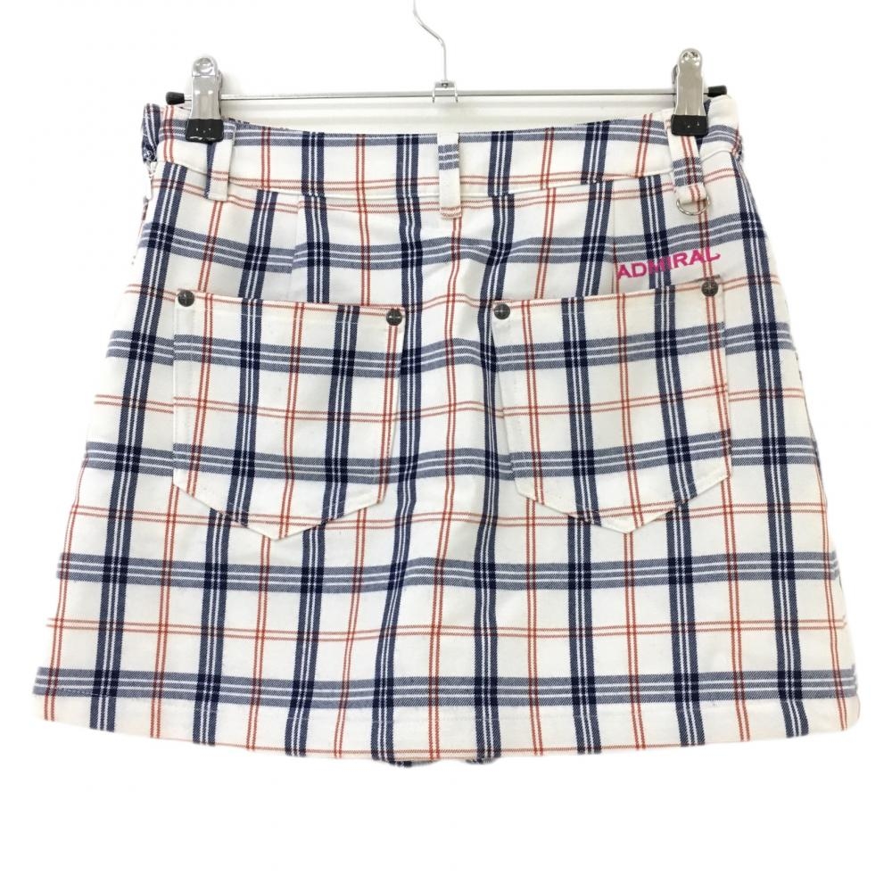アドミラル キュロットスカート 白×ブルー チェック柄 ロゴピンク レディース S ゴルフウェア Admiral