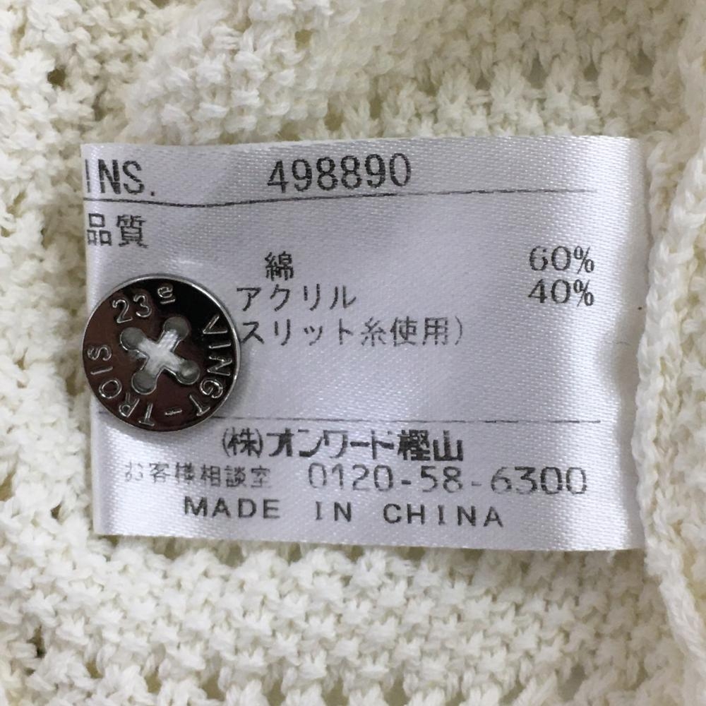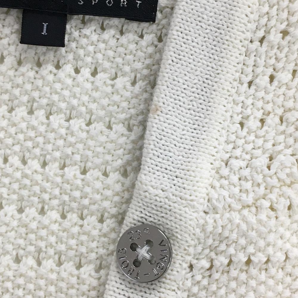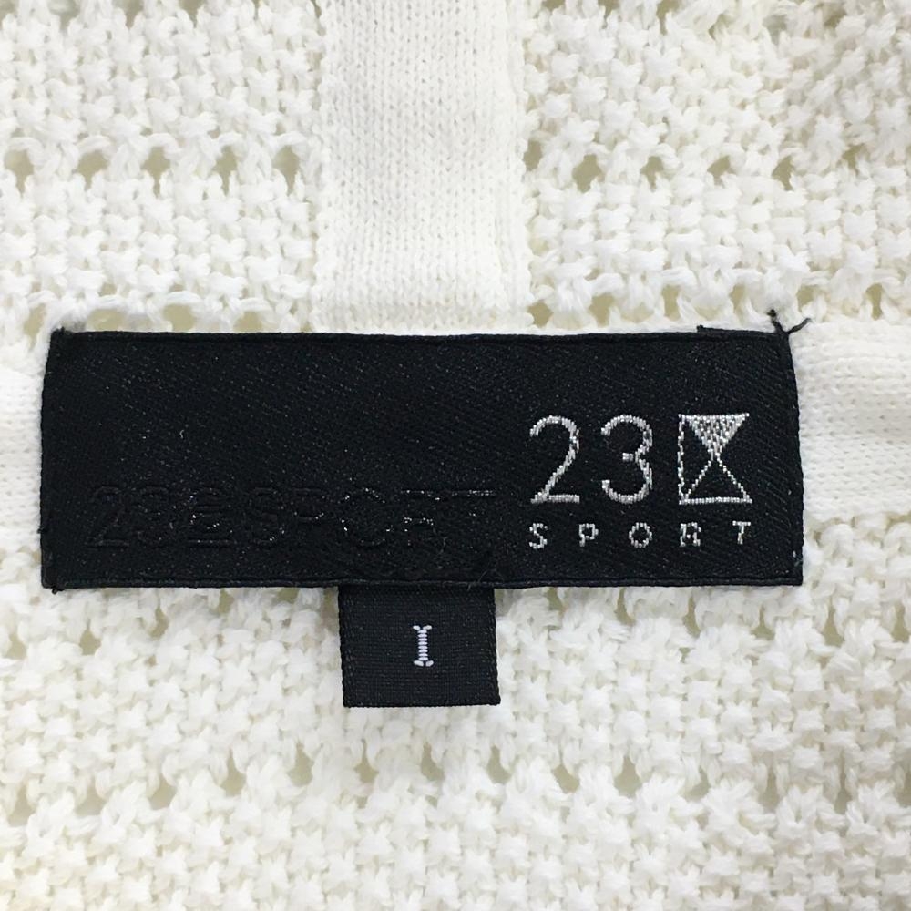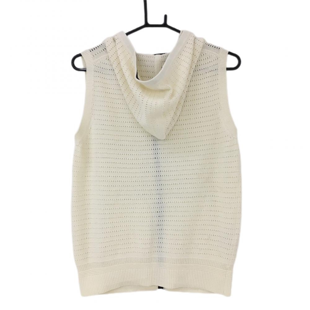 【美品】23区スポーツ フード付ベスト アイボリー 透かし編み ボタン開閉 レディース I(M) ゴルフウェア 23区