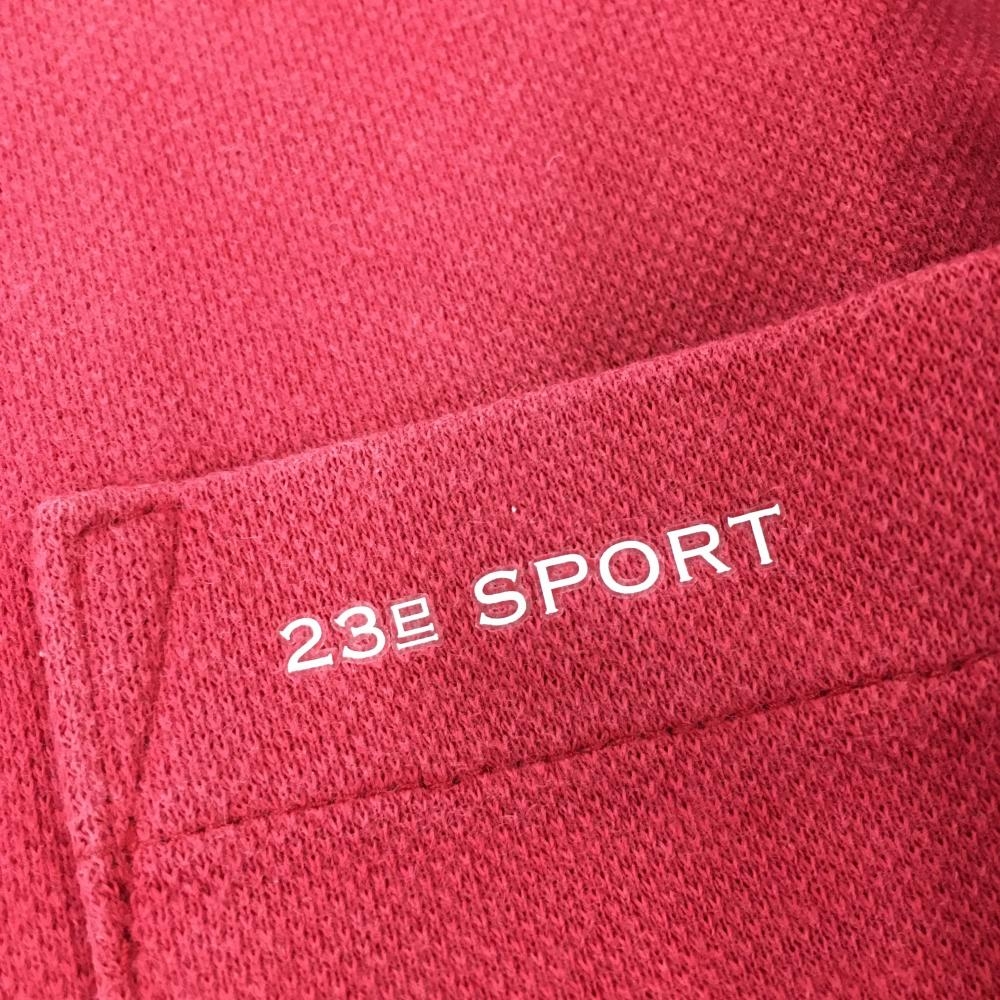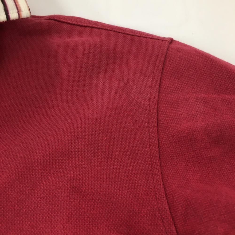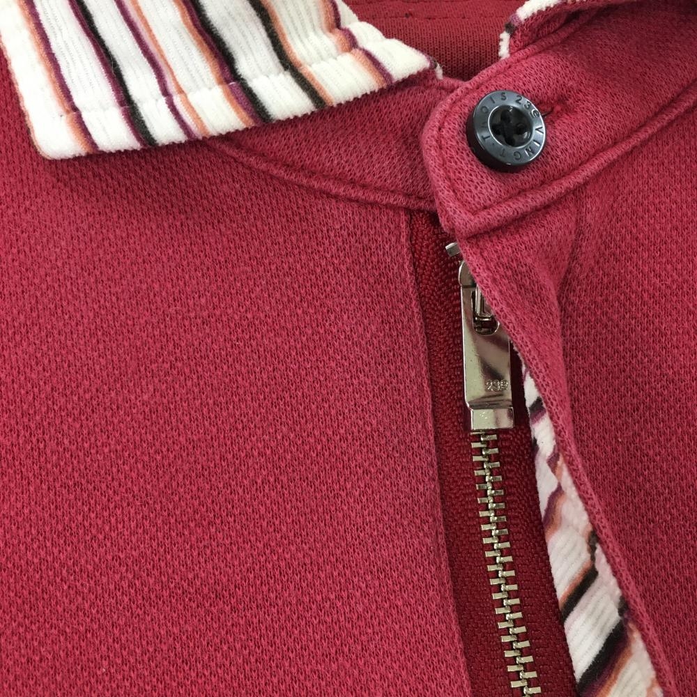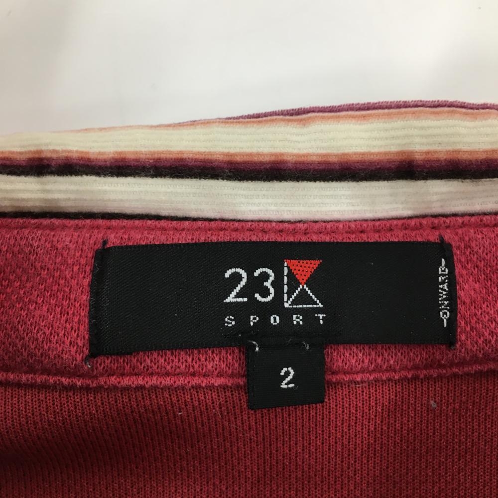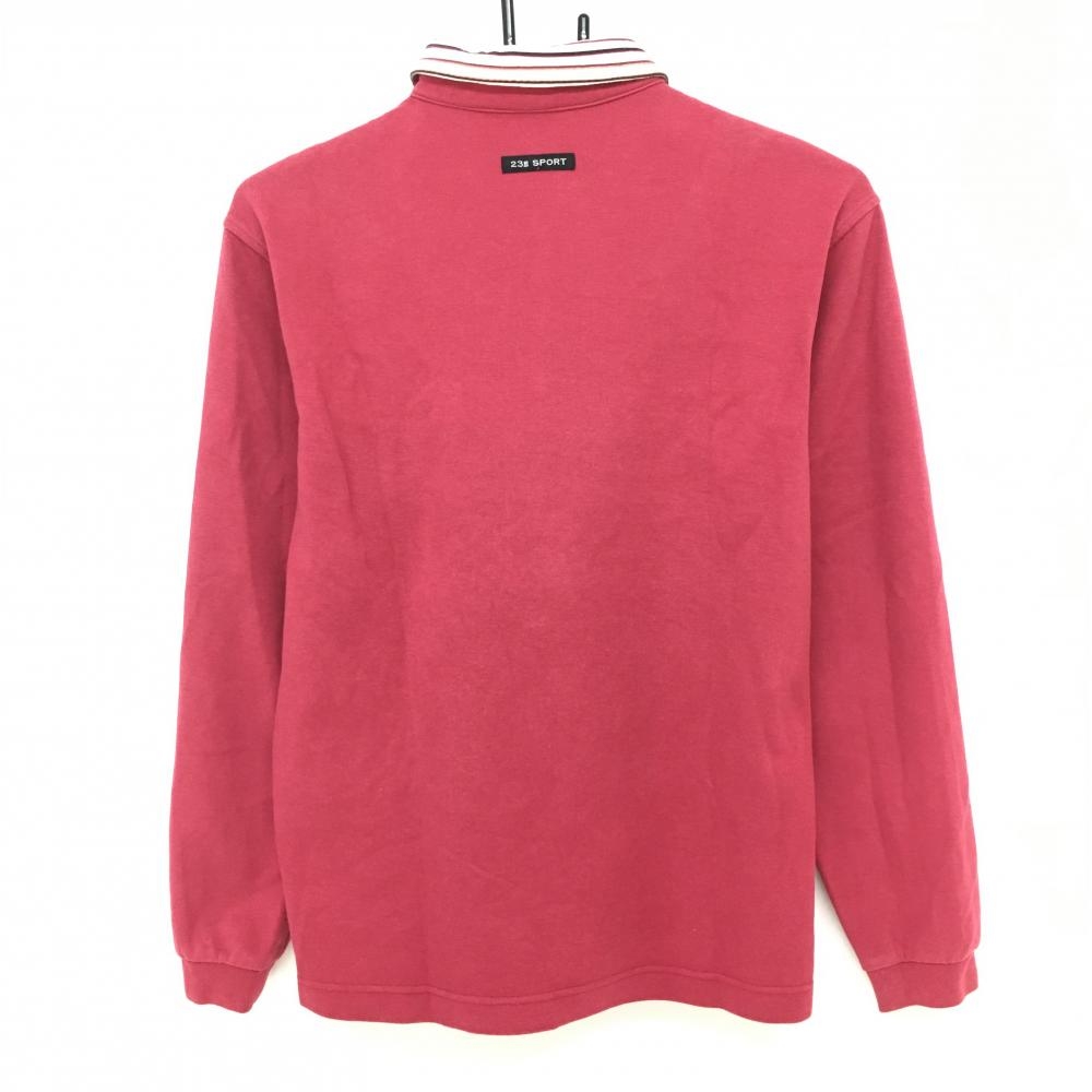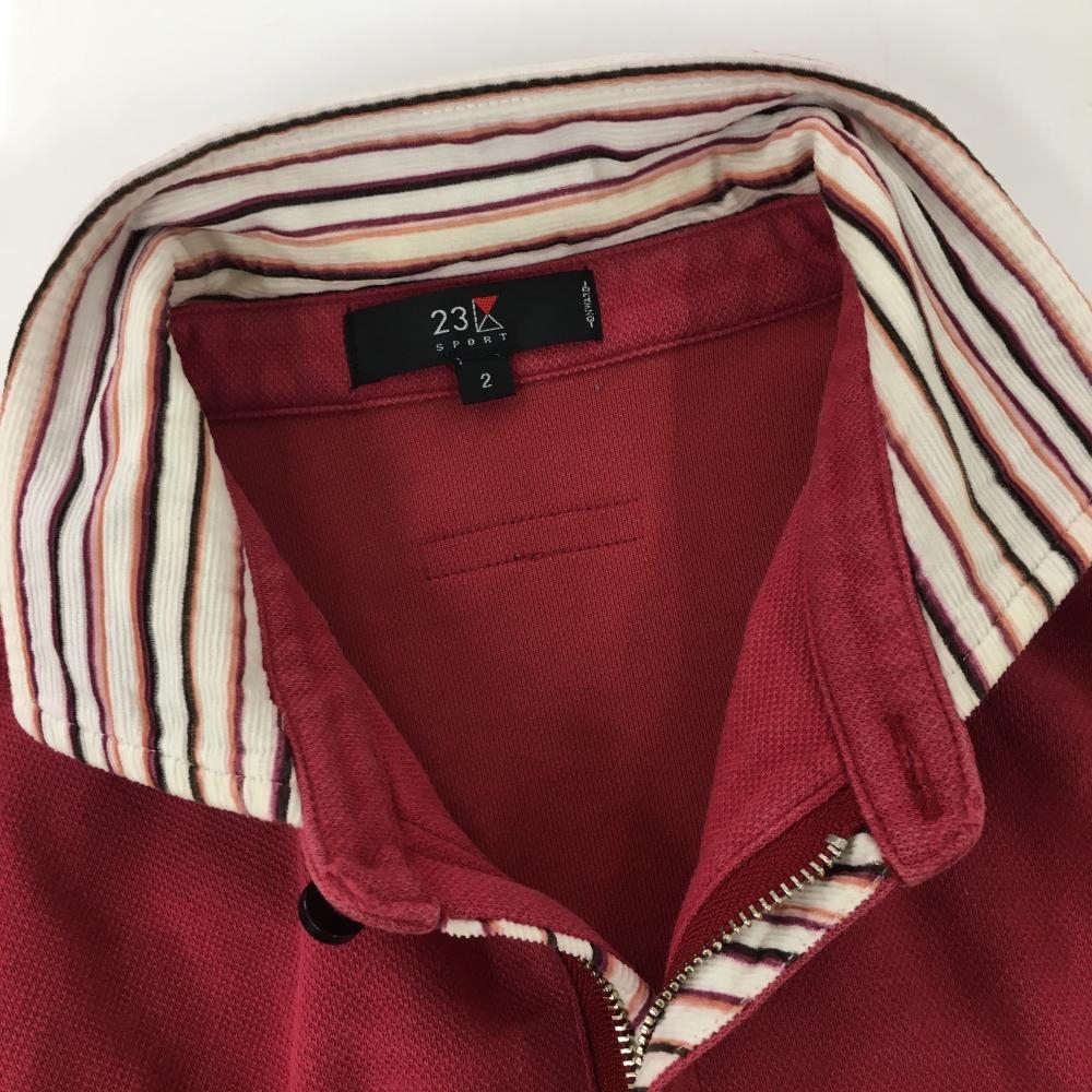 23区 長袖ポロシャツ レッド×白 襟ボーダー ハーフジップ メンズ 2(L) ゴルフウェア 23区