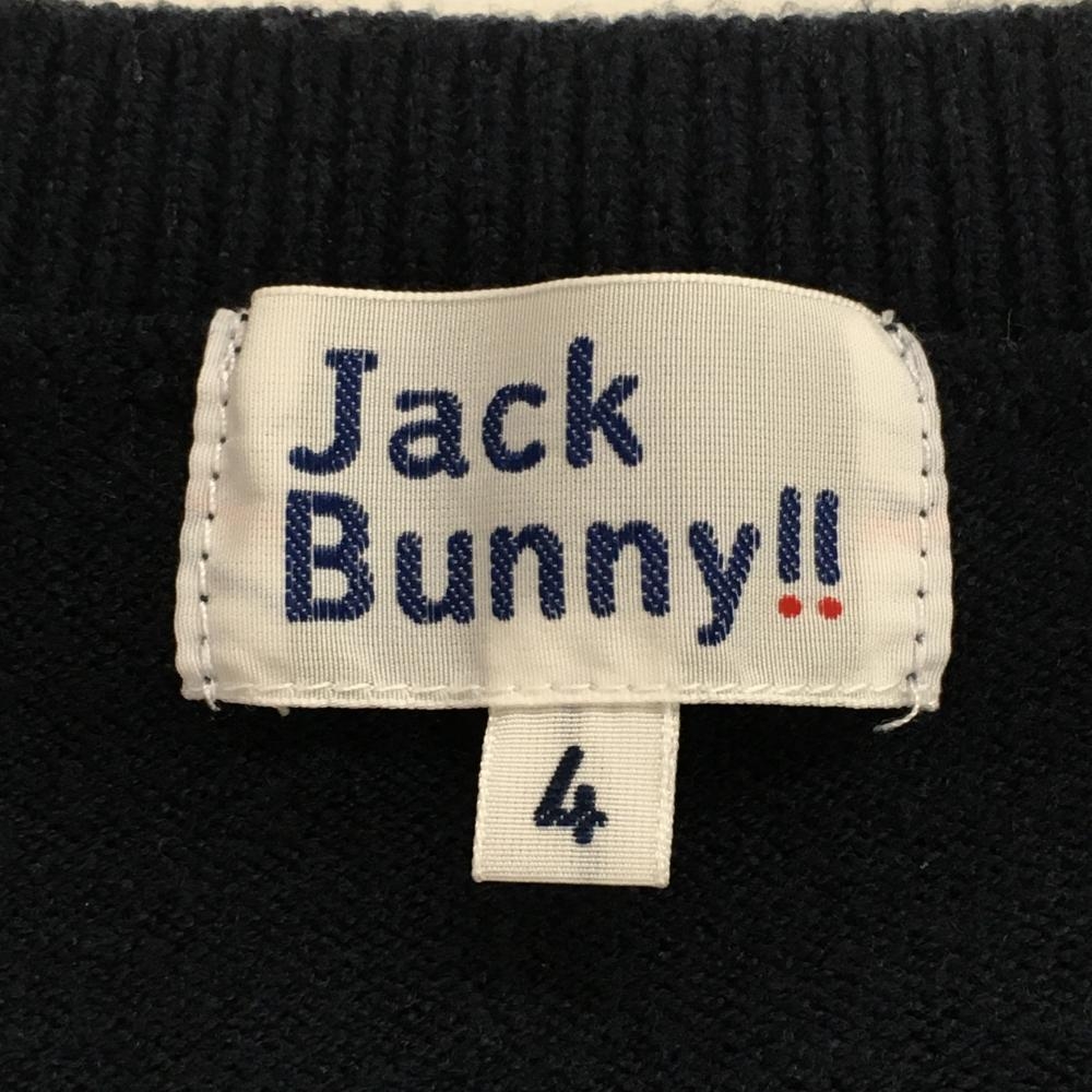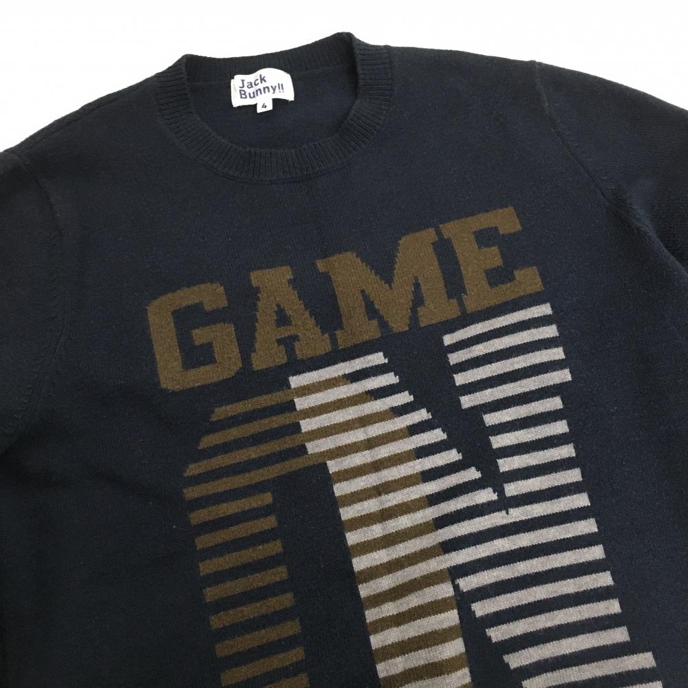 【美品】ジャックバニー セーター ネイビー×ブラウン フロントロゴ メンズ 4(M) ゴルフウェア Jack Bunny