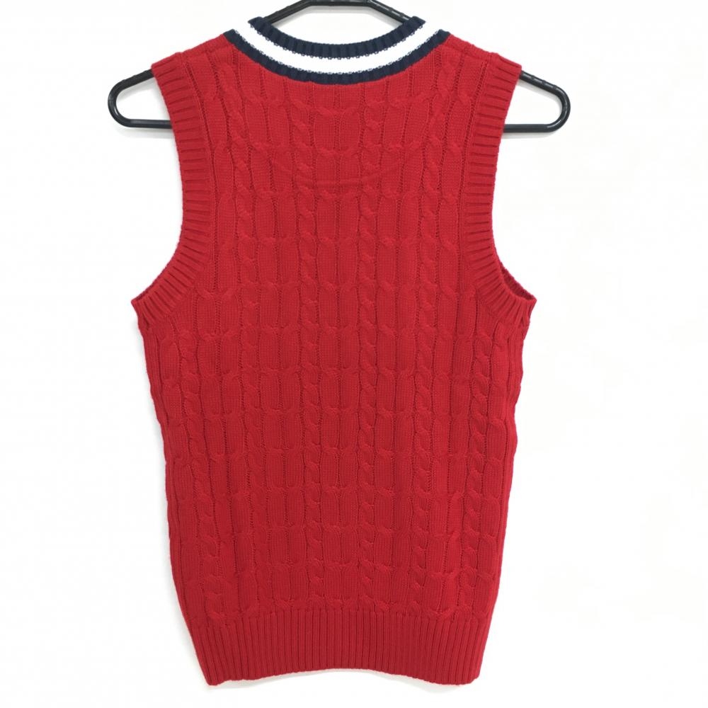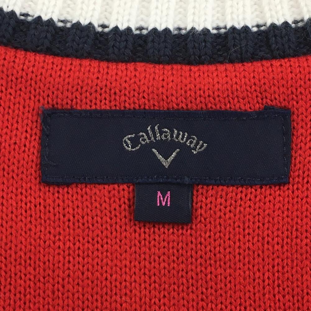 【超美品】キャロウェイ ニットベスト レッド×ネイビー Vネック ケーブル編み レディース M ゴルフウェア Callaway