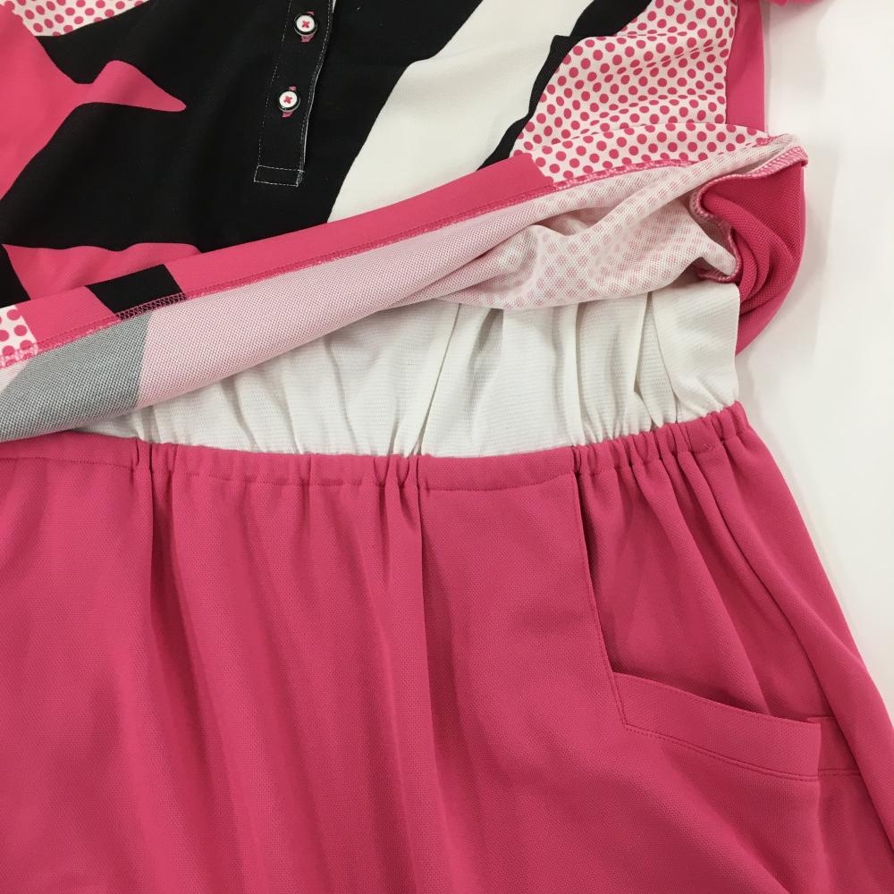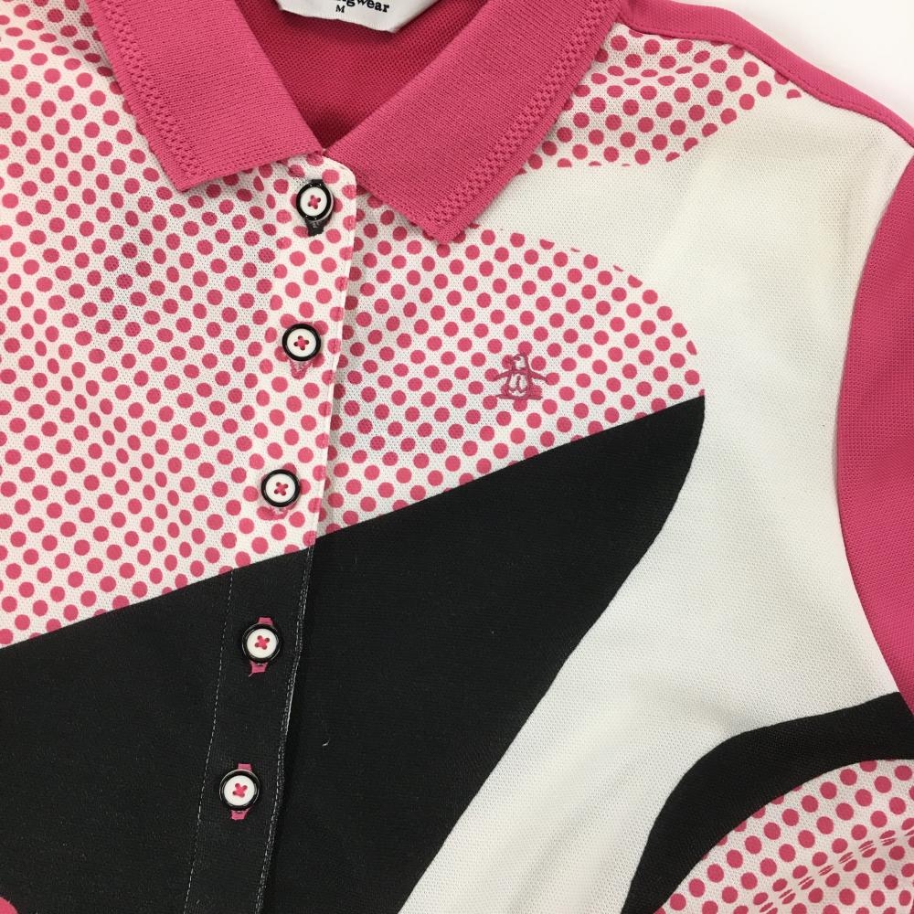 マンシングウェア ワンピース ピンク×白 ドット柄 セパレート風 レディース M ゴルフウェア Munsingwear