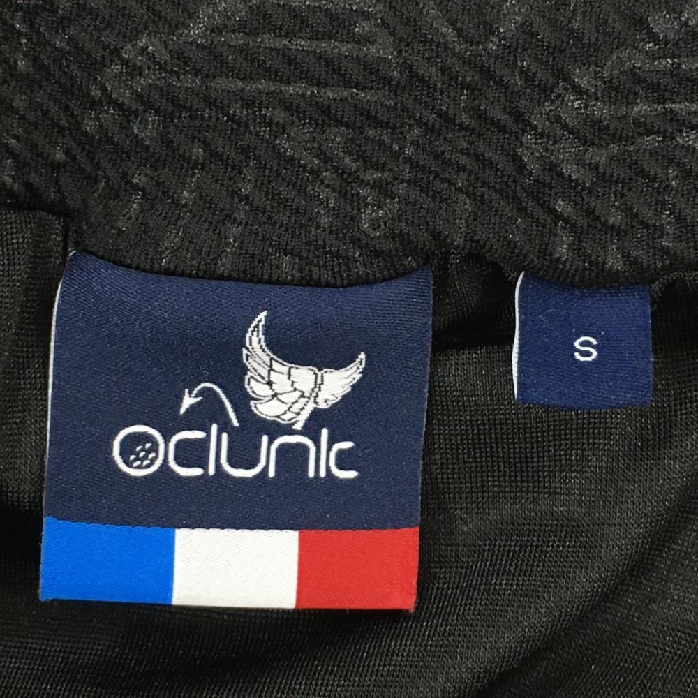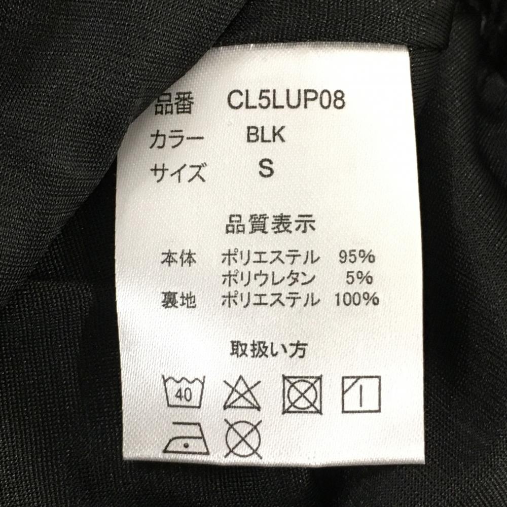 【超美品】クランク スカート 黒 ロゴ×ストライプ総柄 サッカー生地 ウエストゴム レディース S ゴルフウェア CLUNK