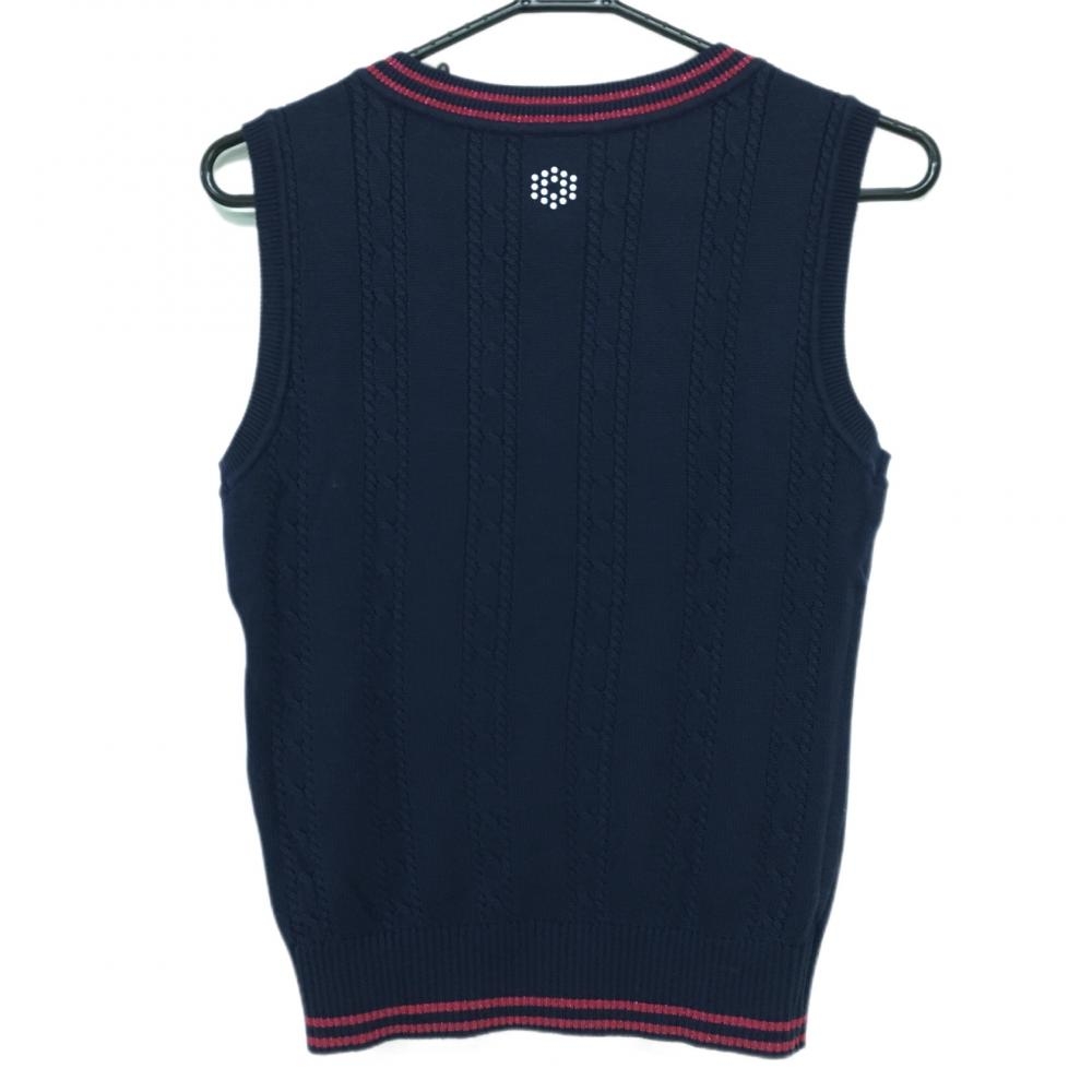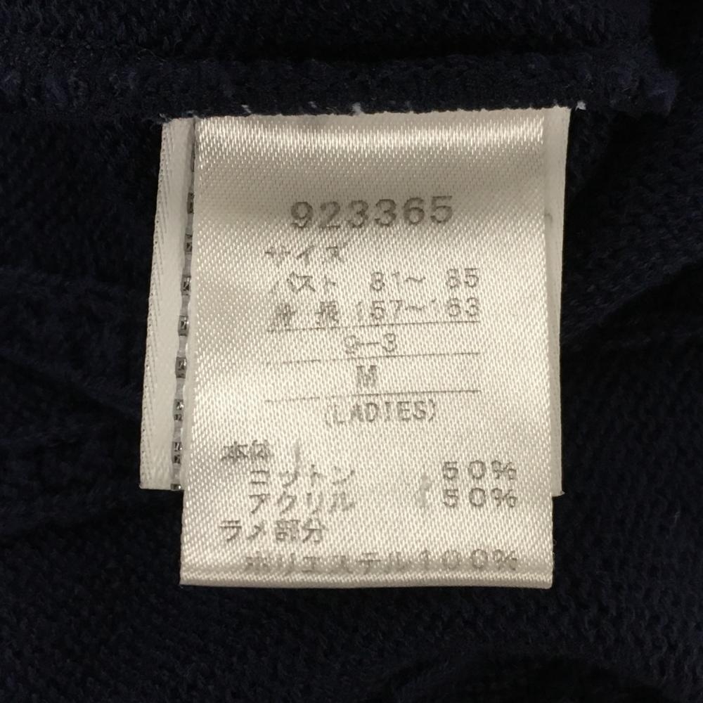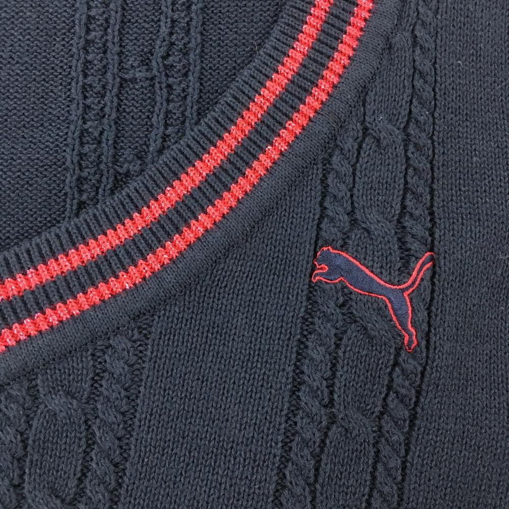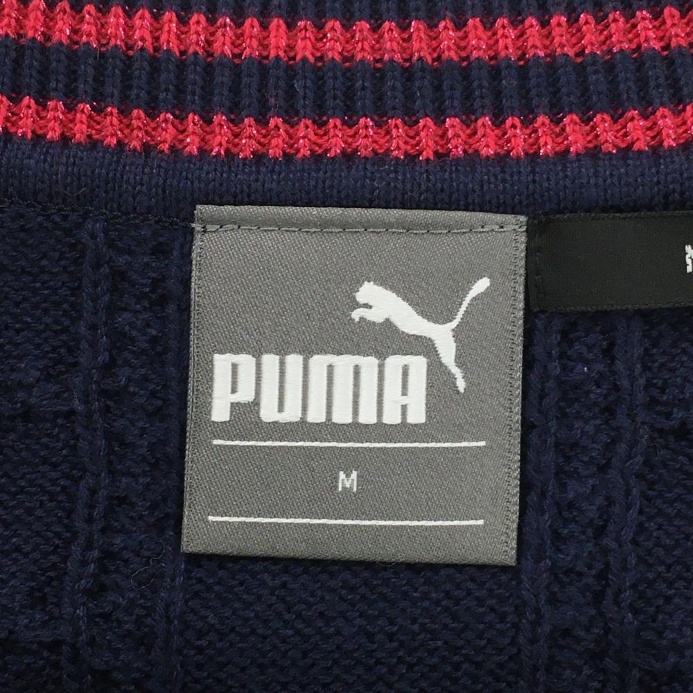 【美品】プーマ ベスト ネイビー×ピンク Vネック ケーブル編み ラメ糸 レディース M ゴルフウェア PUMA