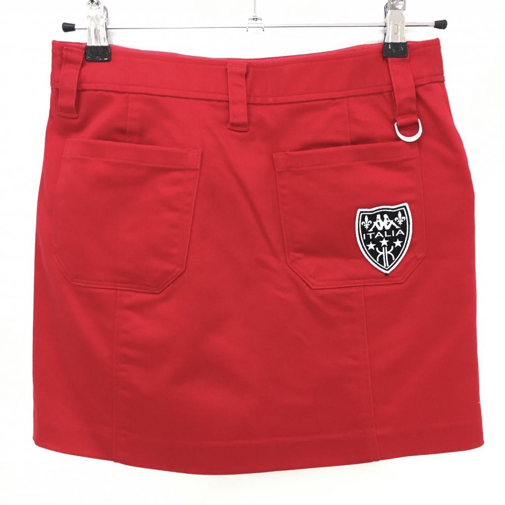 【超美品】カッパ スカート レッド×白 ロゴ刺しゅう 裾スリット レディース S ゴルフウェア Kappa