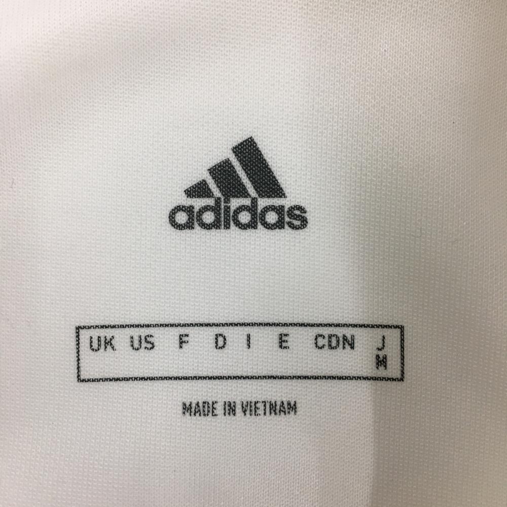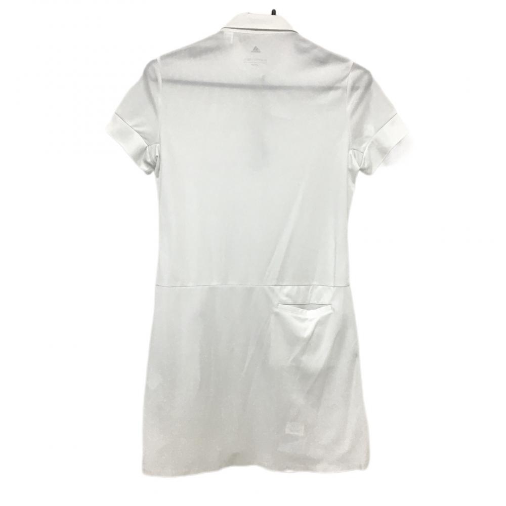 アディダス 半袖ポロワンピース 白×黒 胸元ロゴ 袖3ライン レディース M ゴルフウェア adidas