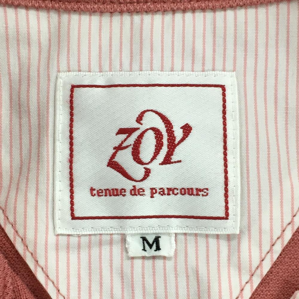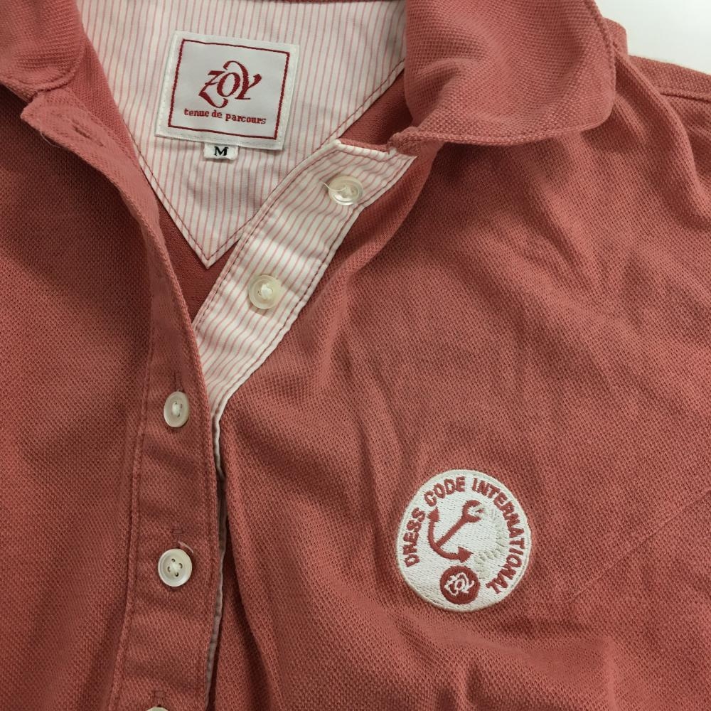 ゾーイ 長袖ポロシャツ ピンク×白 刺しゅう 前立て内側ストライプ レディース M ゴルフウェア ZOY