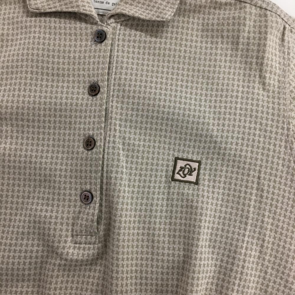 【超美品】ゾーイ 長袖ポロシャツ ベージュ×グレー 千鳥格子 総柄 レディース ゴルフウェア ZOY