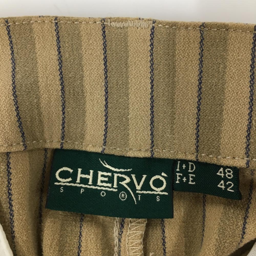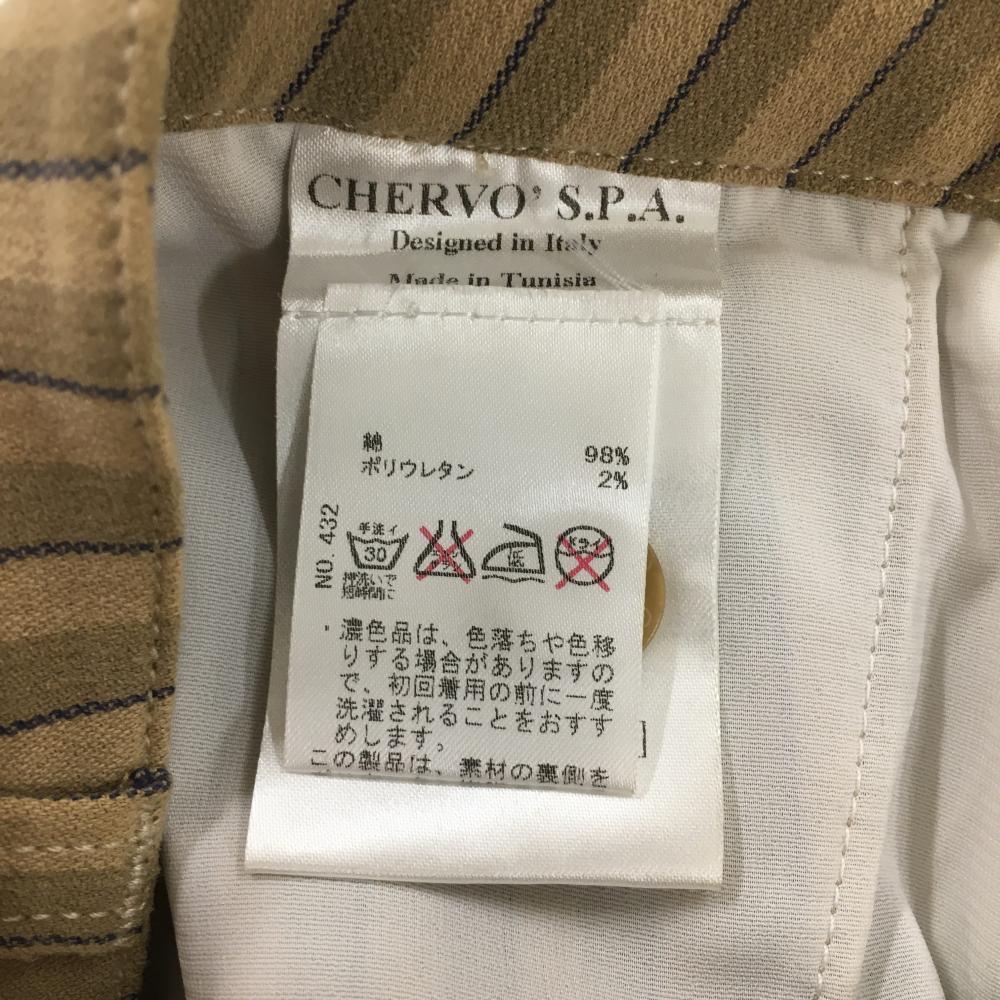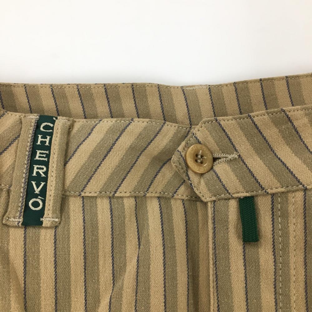 シェルボ パンツ ベージュ×ライトカーキ ストライプ柄 後ろロゴ刺しゅう メンズ 42 ゴルフウェア CHERVO