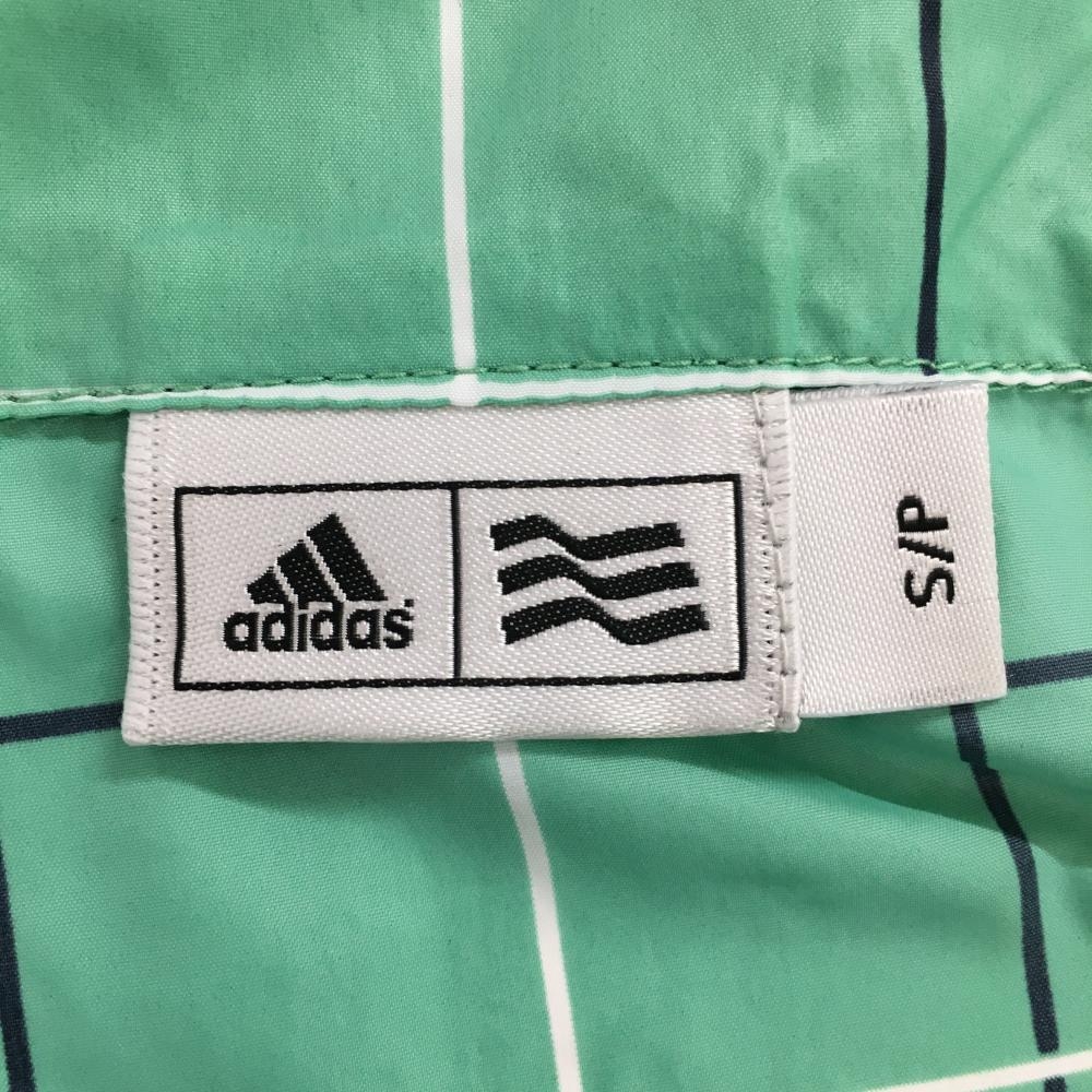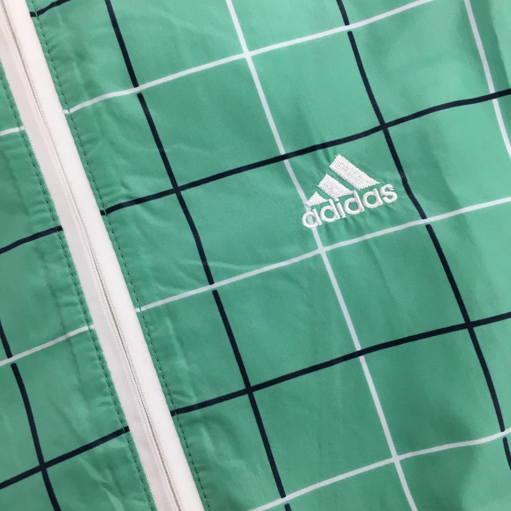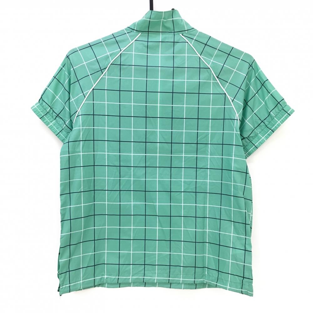 【超美品】アディダス 半袖ブルゾン グリーン×黒 チェック柄 総柄 ハーフジップ レディース S/P ゴルフウェア adidas