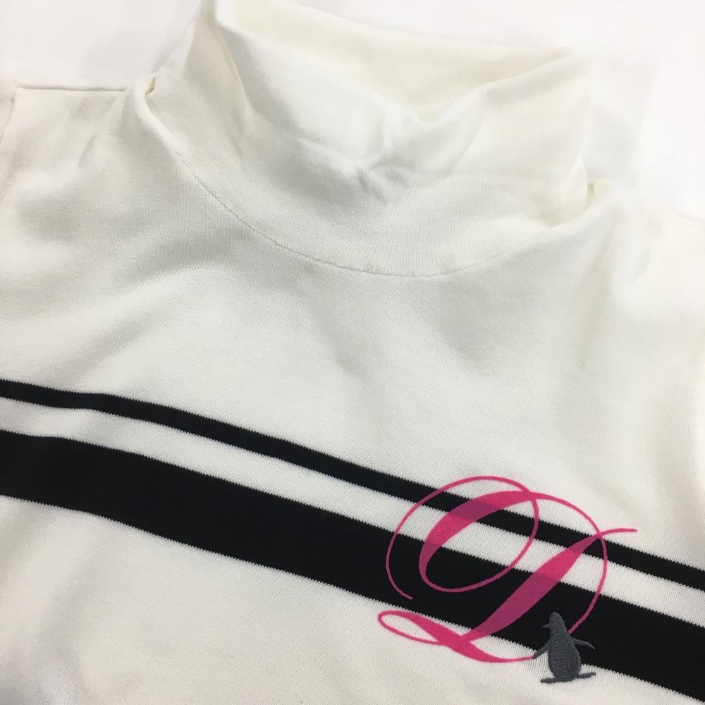 マンシングウェア ハイネックセーター 白×黒 袖リブ生地 胸ボーダー レディース S ゴルフウェア Munsingwear