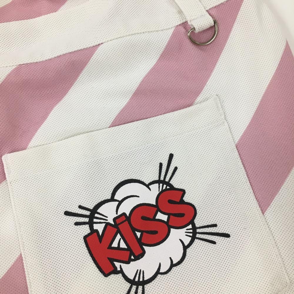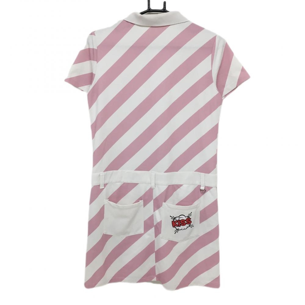 キスオンザグリーン 半袖ポロワンピース ピンク×白 斜めボーダー レディース 2(M) ゴルフウェア kiss on the green