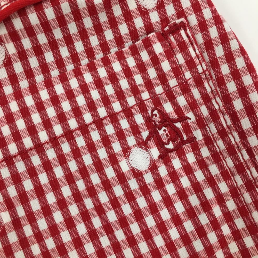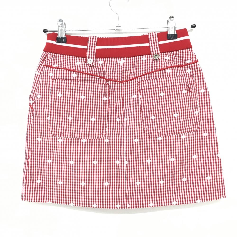 【超美品】マンシングウェア スカート レッド×白 チェック柄×ドット柄 ウエストゴム レディース 5 ゴルフウェア Munsingwear