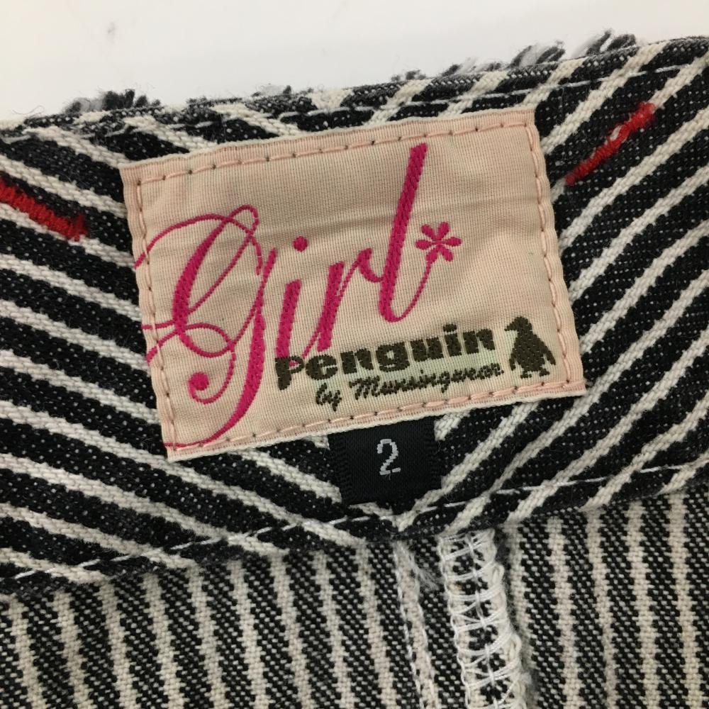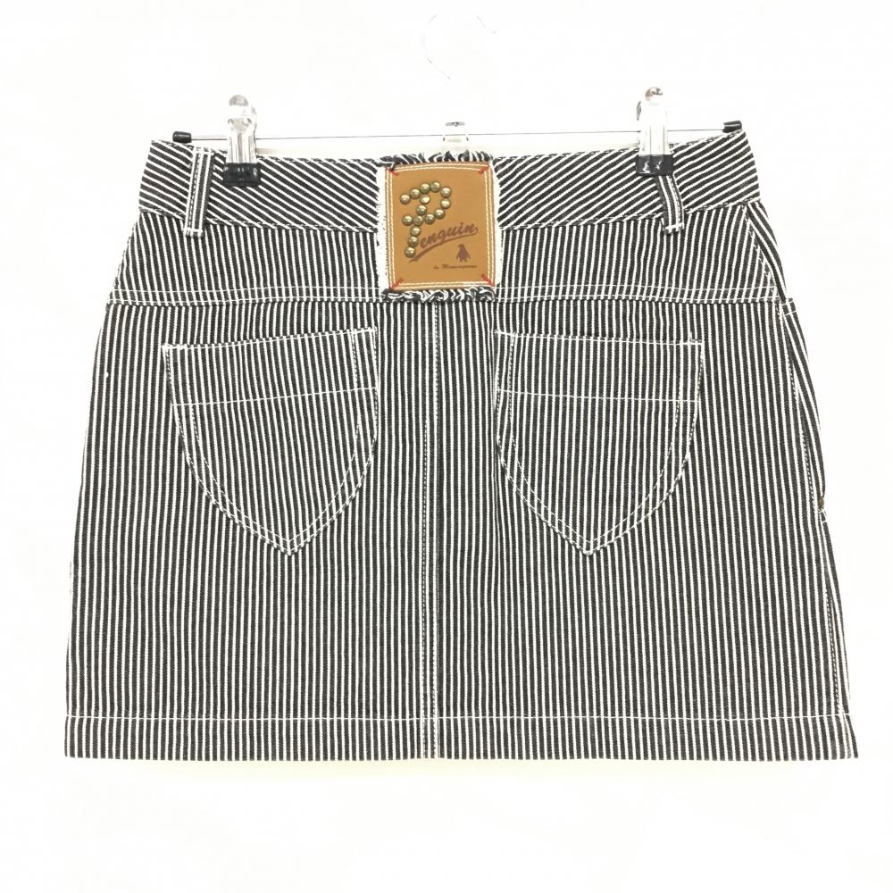 【美品】ペンギンbyマンシングウェア スカート 黒×白 ストライプ レディース 2 ゴルフウェア Munsingwear