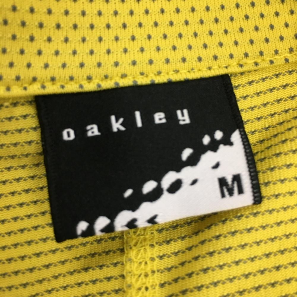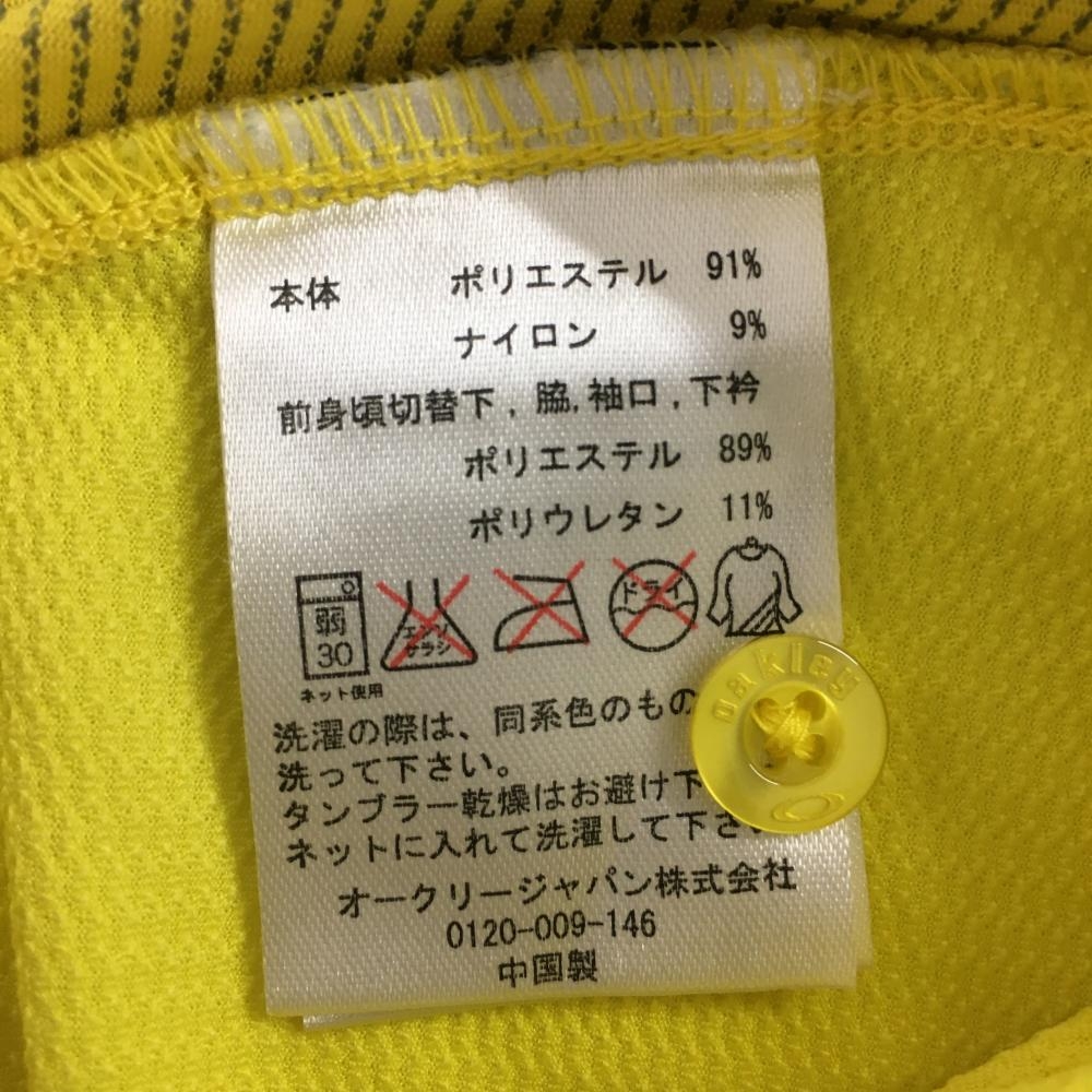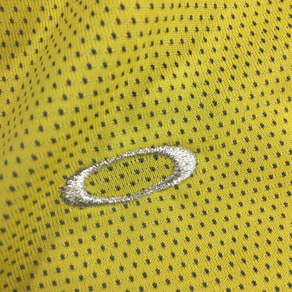オークリー 長袖ポロシャツ イエロー×グレー ドット柄 ロゴ刺しゅう 織生地 レディース M ゴルフウェア Oakley