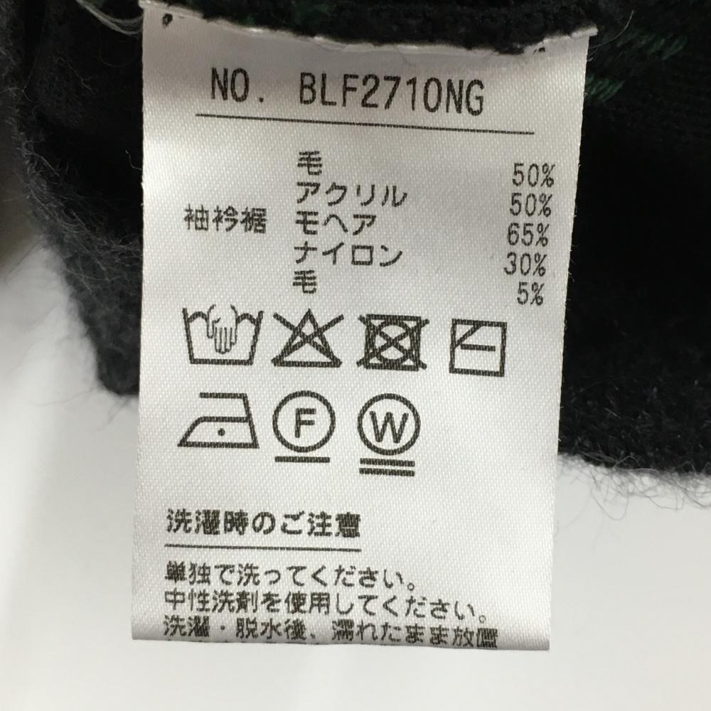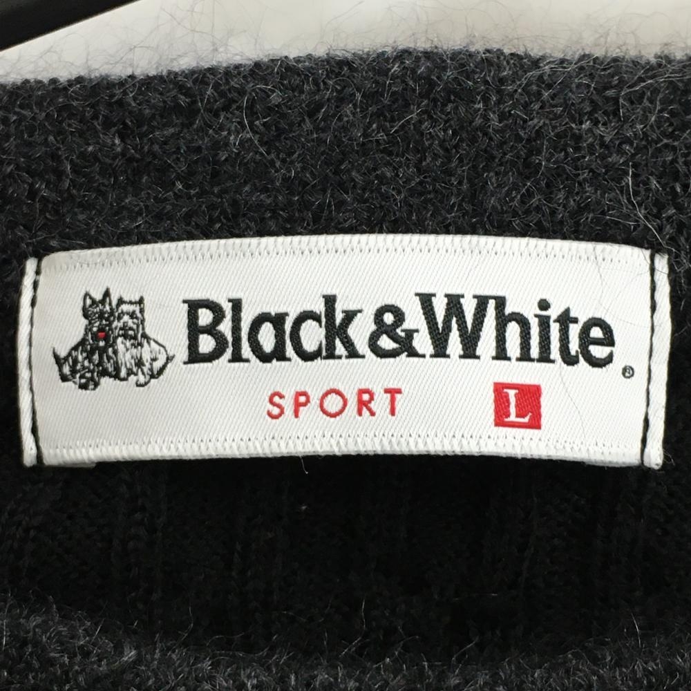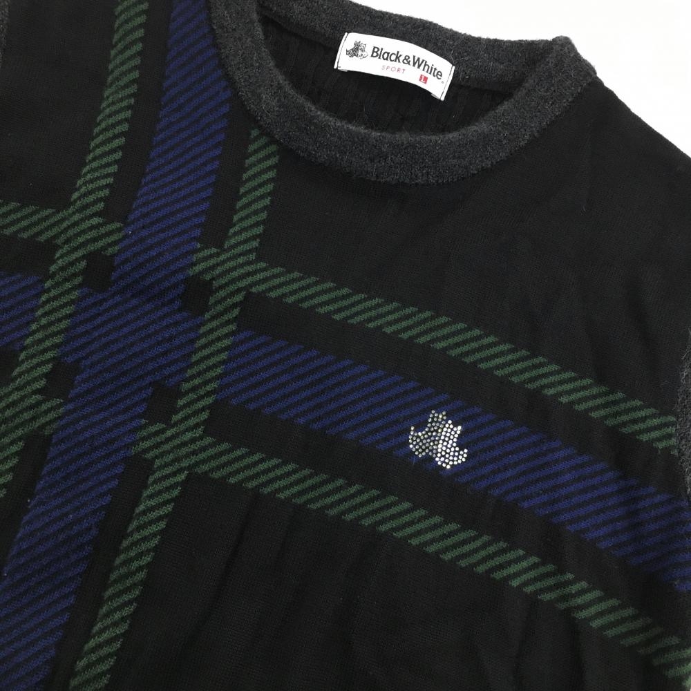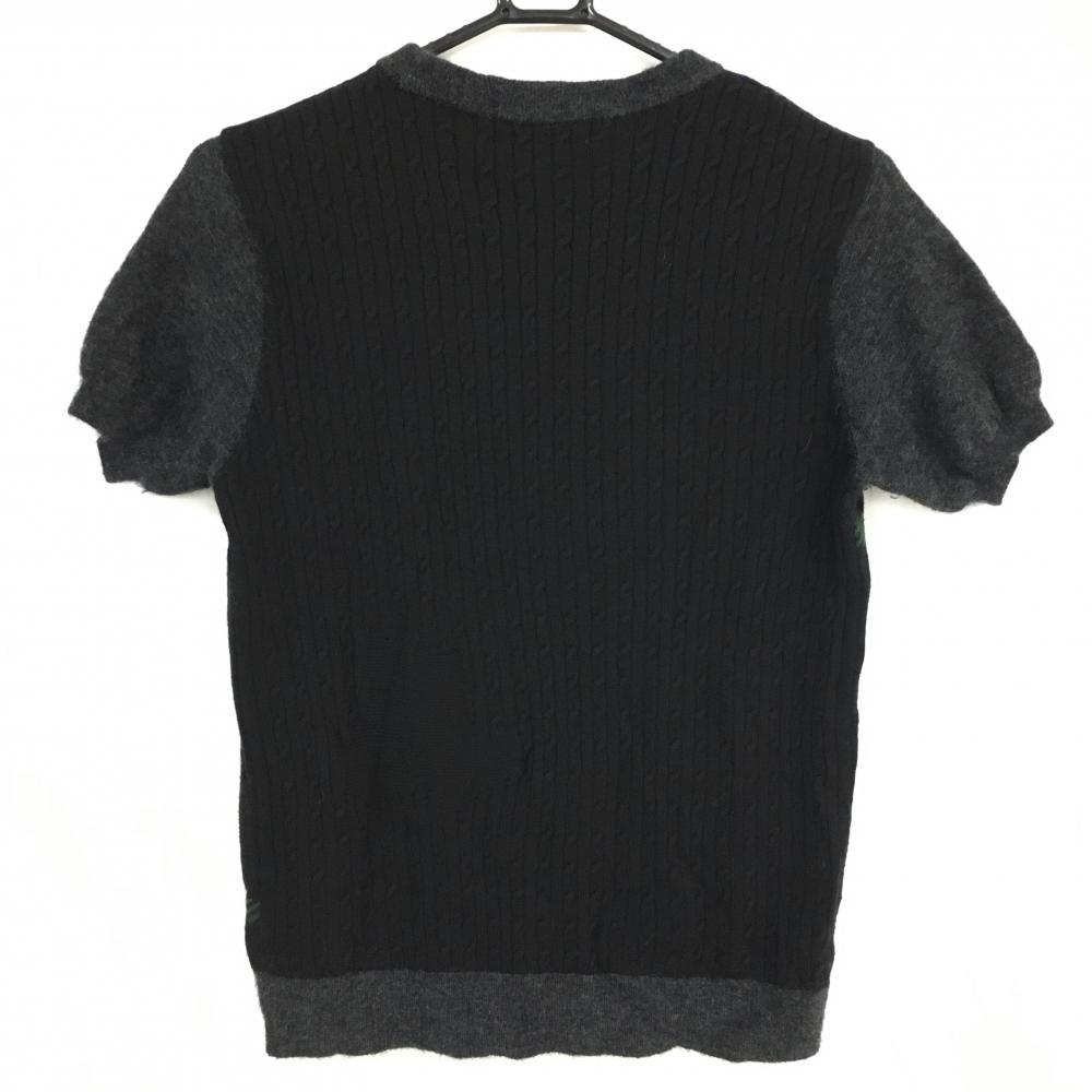 【美品】ブラックアンドホワイト 半袖セーター グレー×ブルー ラインストーン ネック・袖異素材 レディース L ゴルフウェア Black&White