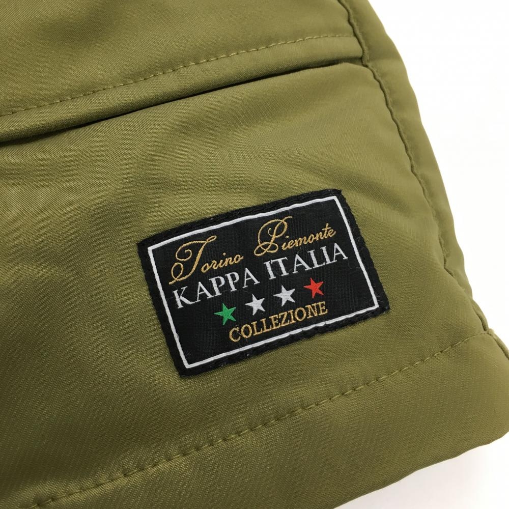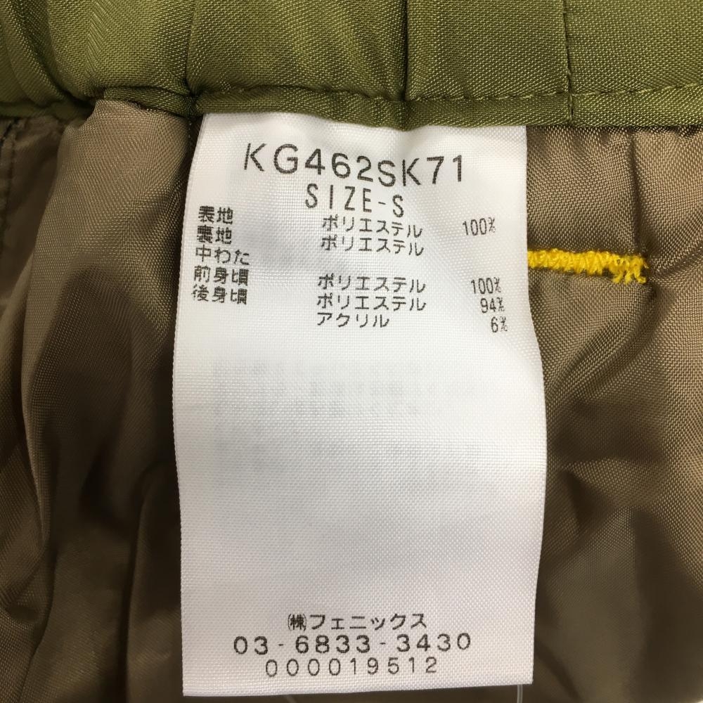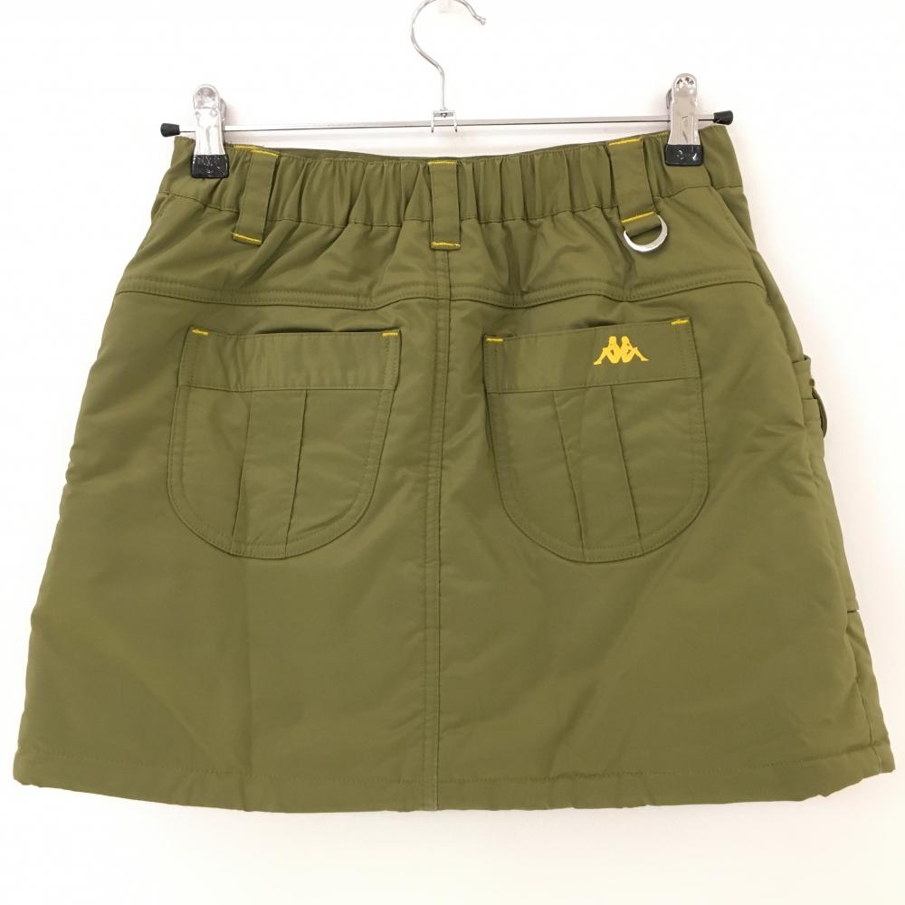 【超美品】カッパ 中綿スカート カーキ×イエロー 斜めストライプ地模様 ロゴプリント 6ポケット レディース S ゴルフウェア Kappa