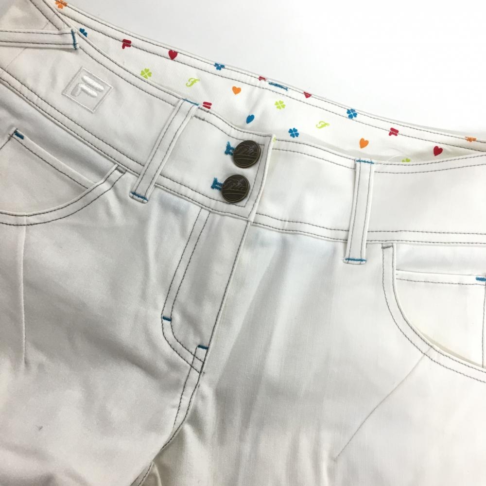 フィラゴルフ パンツ 白×ライトブルー ストレッチ ティー装着可 紙タグ付き レディース M ゴルフウェア FILA GOLF