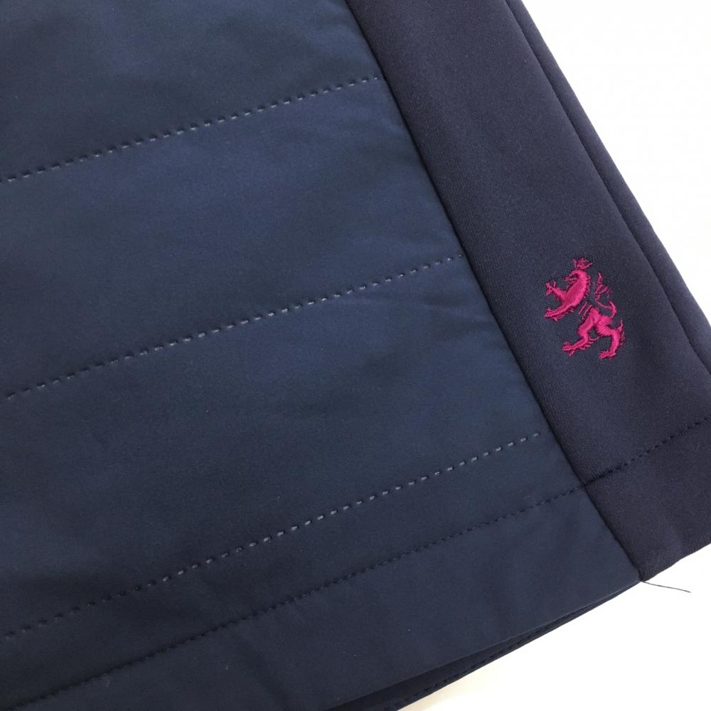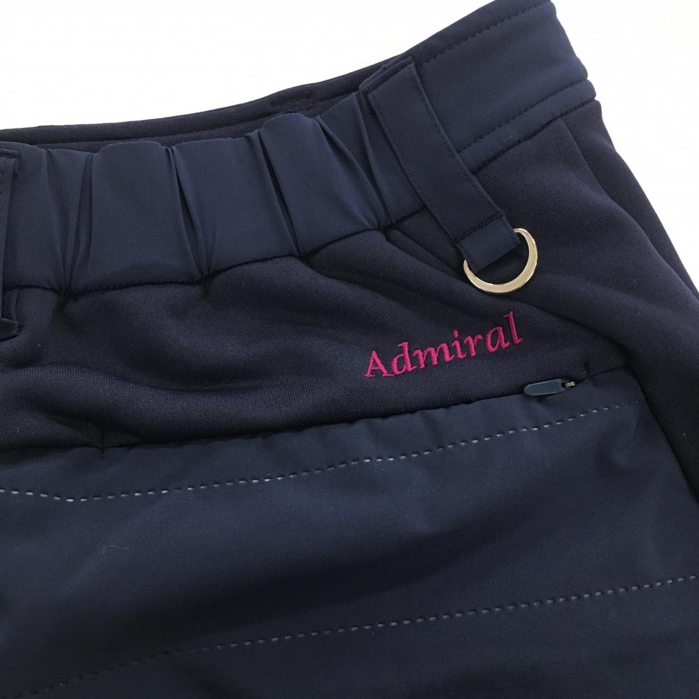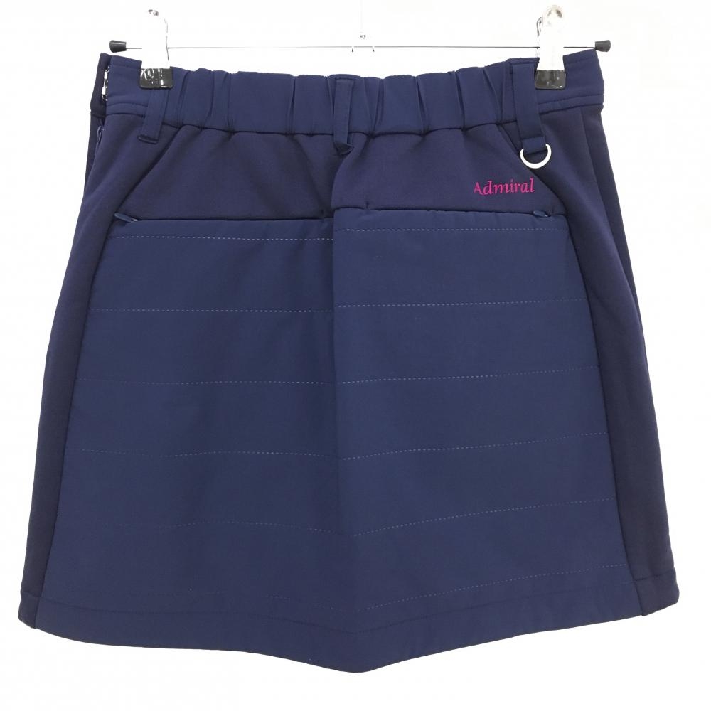 【超美品】アドミラル 中綿スカート ネイビー×ピンク ロゴ刺しゅう 異素材切替 ファスナーポケット レディース M ゴルフウェア Admiral