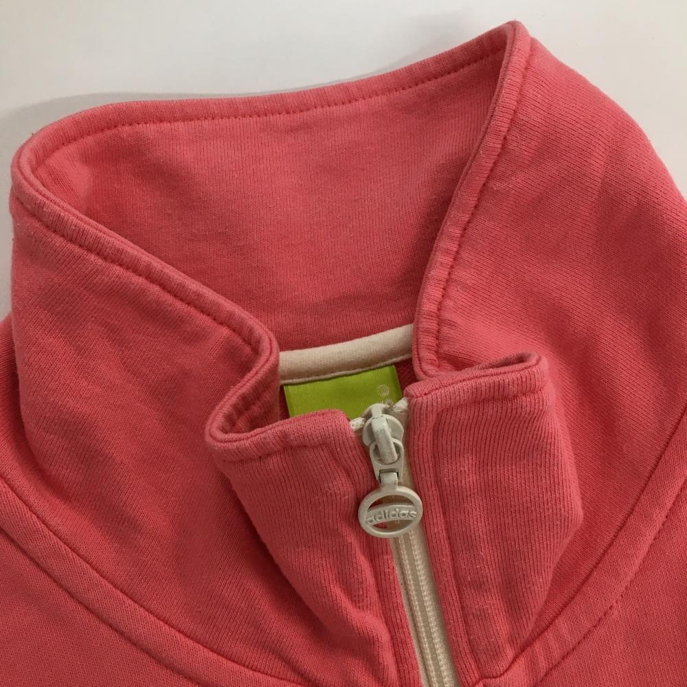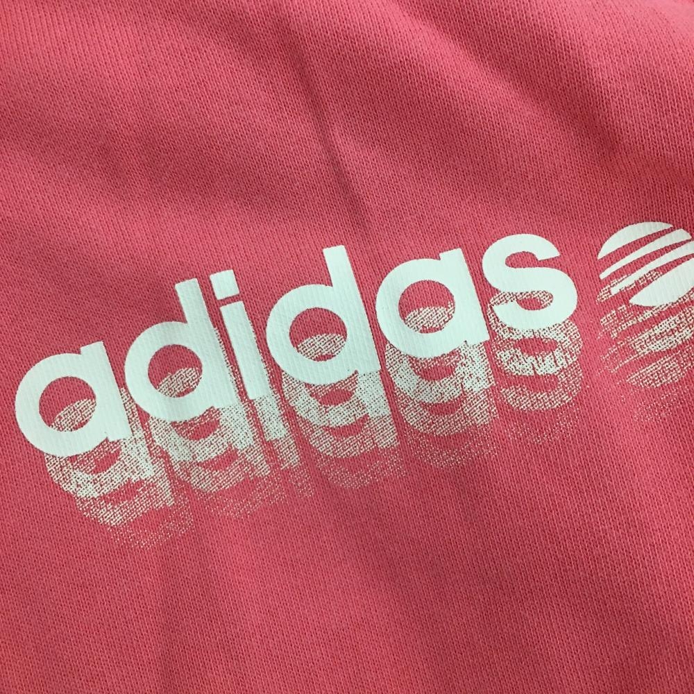 アディダス 半袖ジャケット ピンク×白 ロゴプリント フルジップ レディース L ゴルフウェア adidas