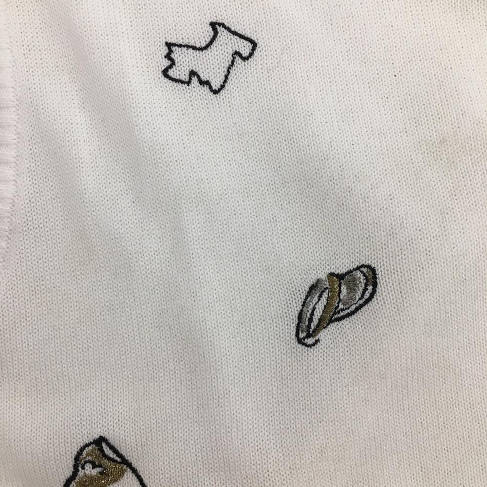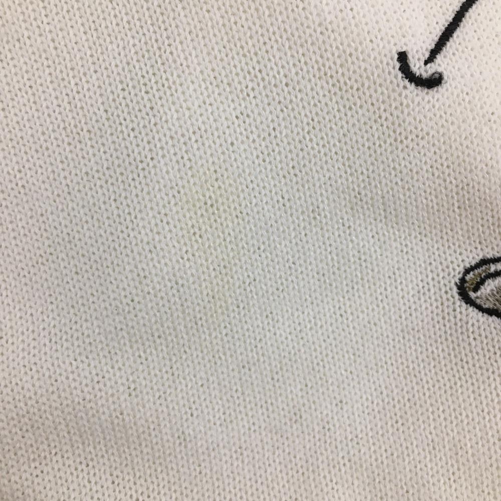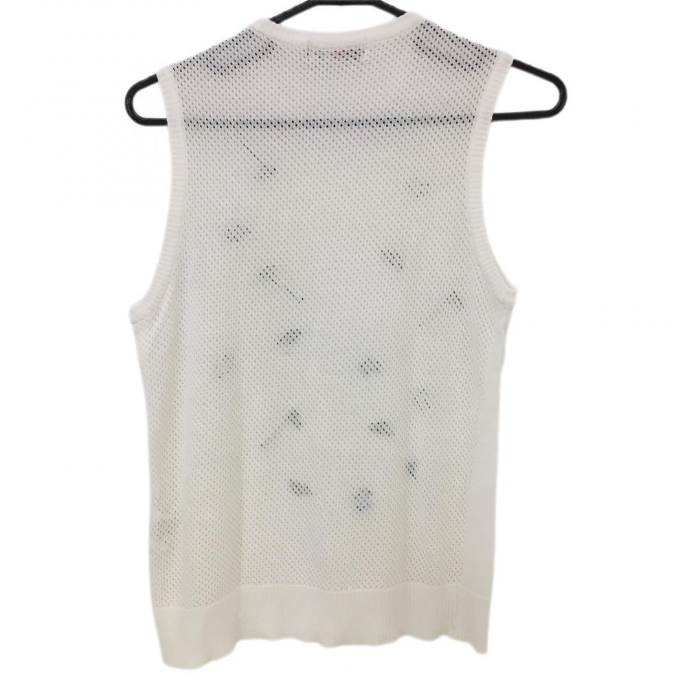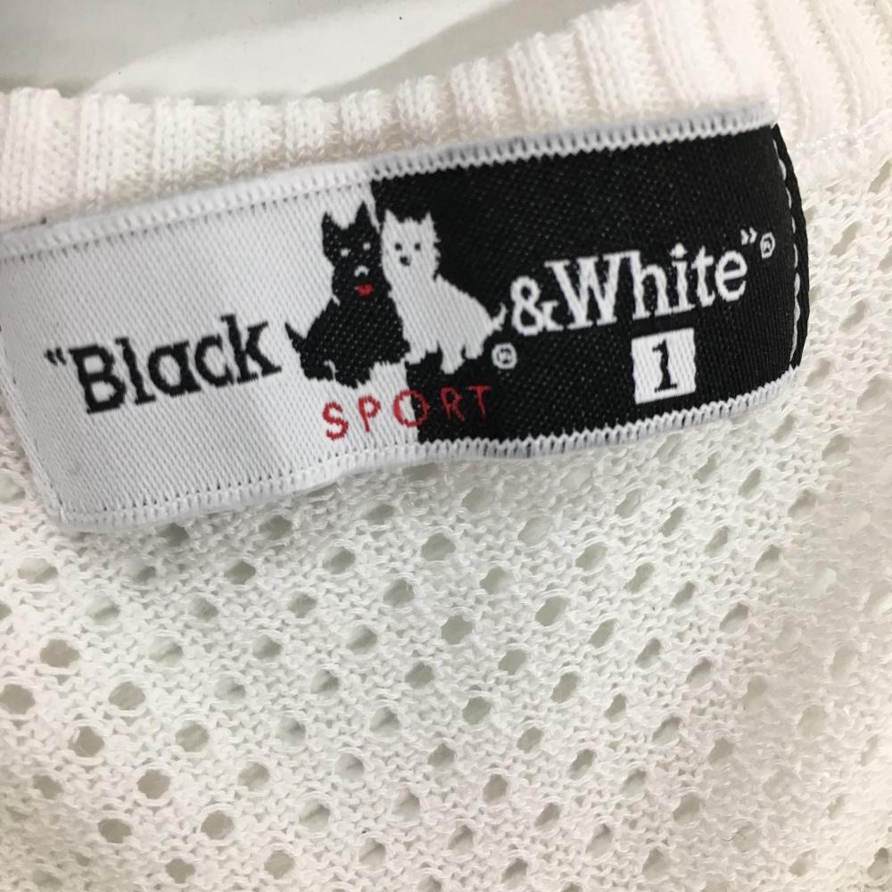 【美品】ブラックアンドホワイト ニットベスト白 前面刺しゅう 背面透かし編み レディース 1(S) ゴルフウェア Black&White