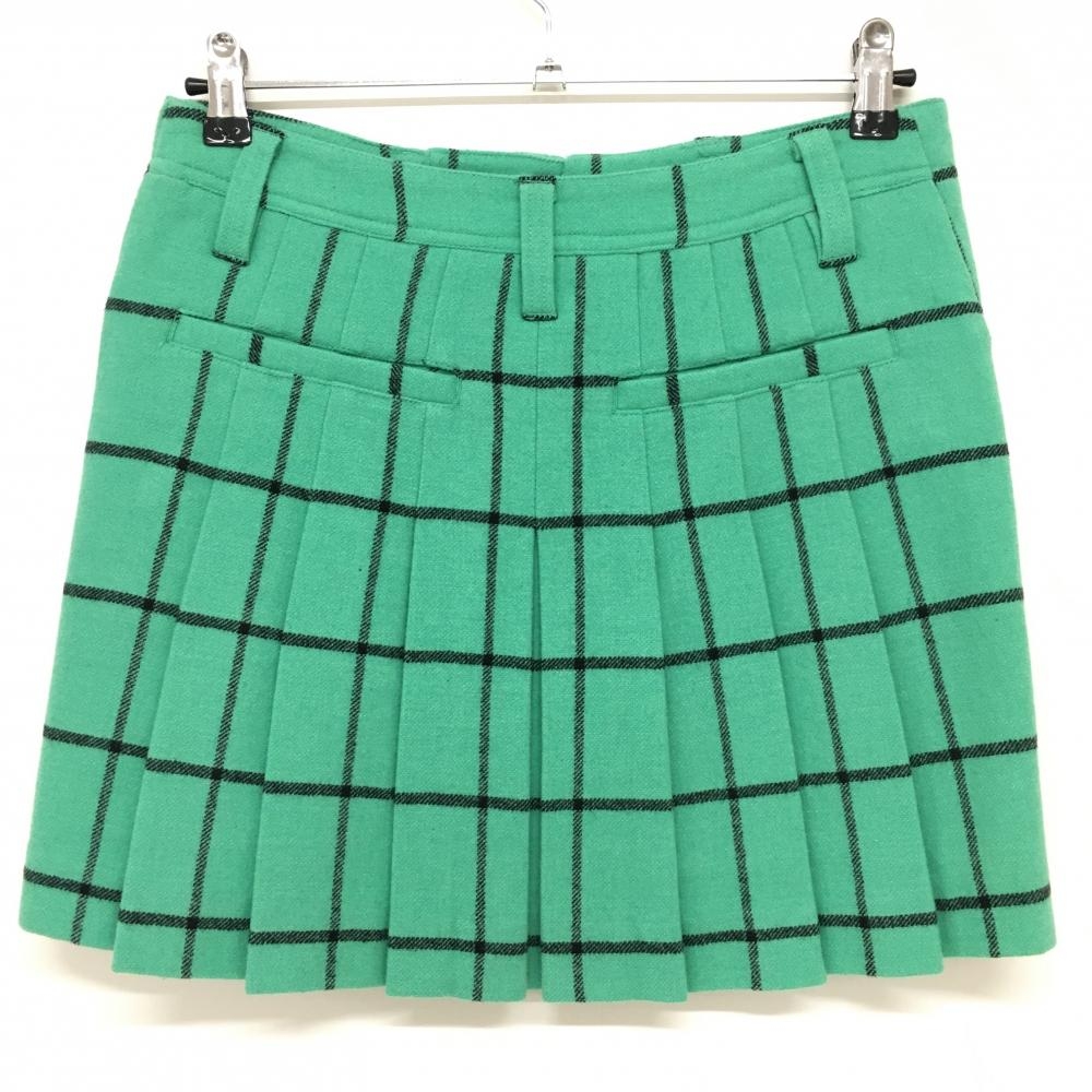 ダンスウィズドラゴン プリーツスカート ライトグリーン×黒 チェック 表起毛 裏地付き レディース 2(M) ゴルフウェア Dance With Dragon