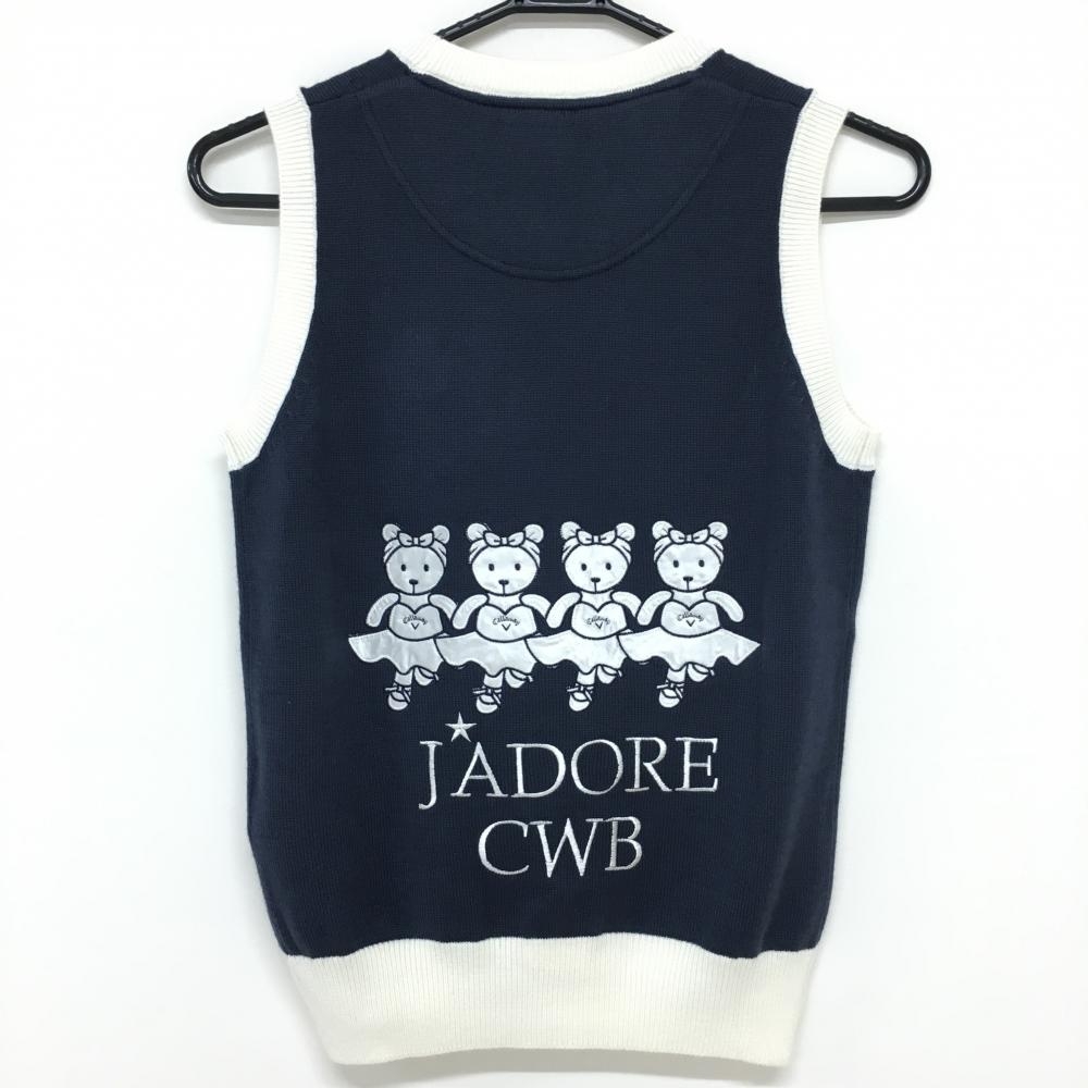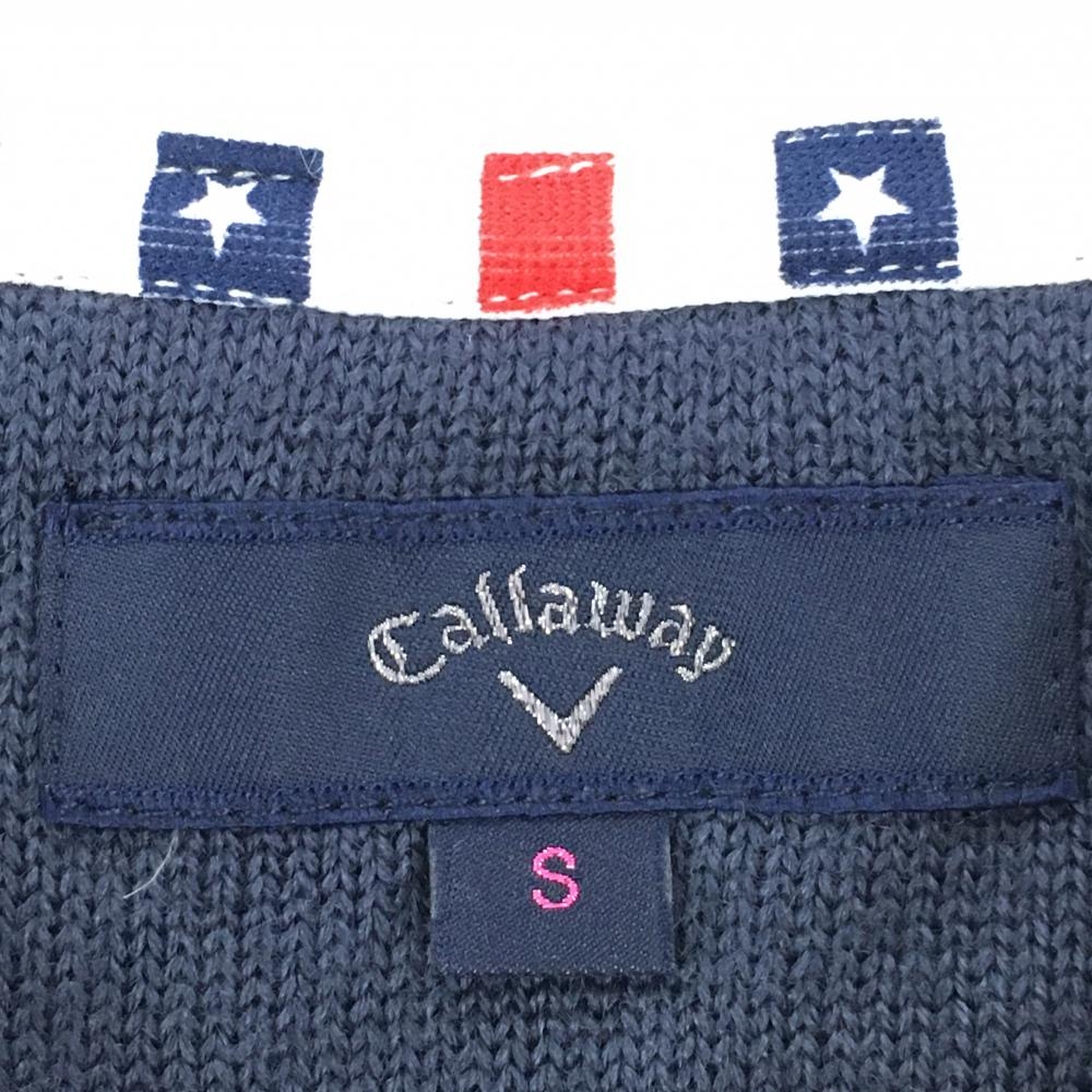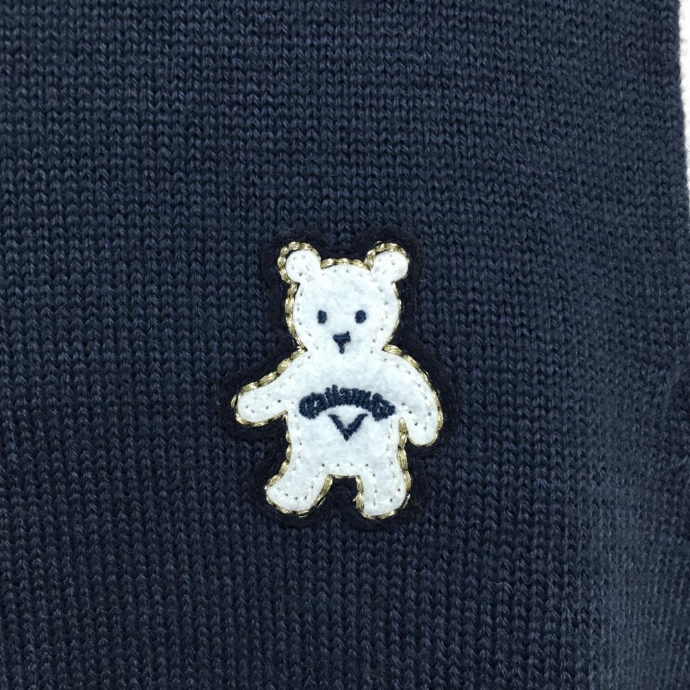 【美品】キャロウェイ ベスト ネイビー×白 ベアワッペン レディース S ゴルフウェア Callaway