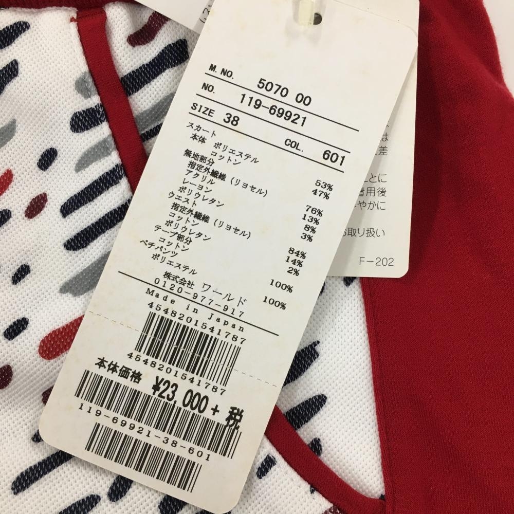 アダバット スカート レッド×白 総柄 ウエストゴム 紙タグ付き レディース 38(M) ゴルフウェア adabat