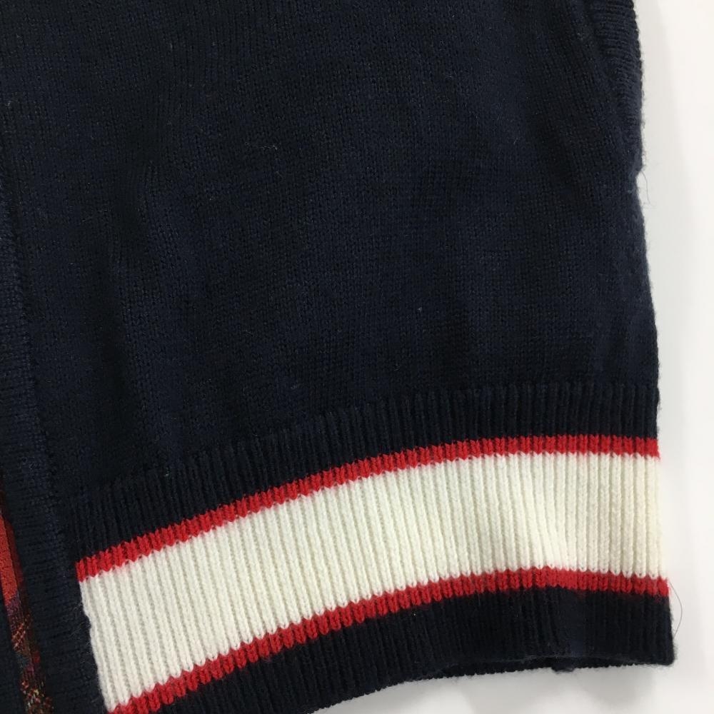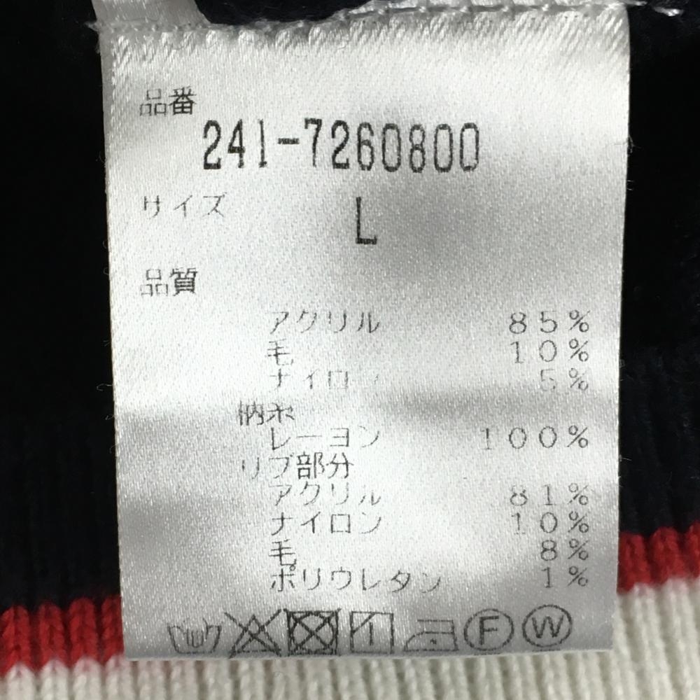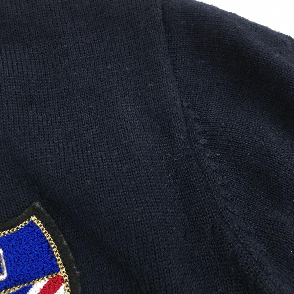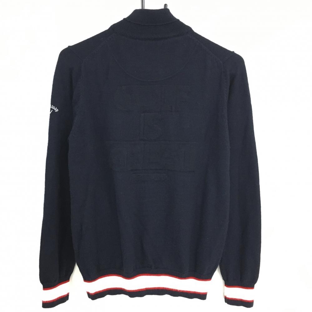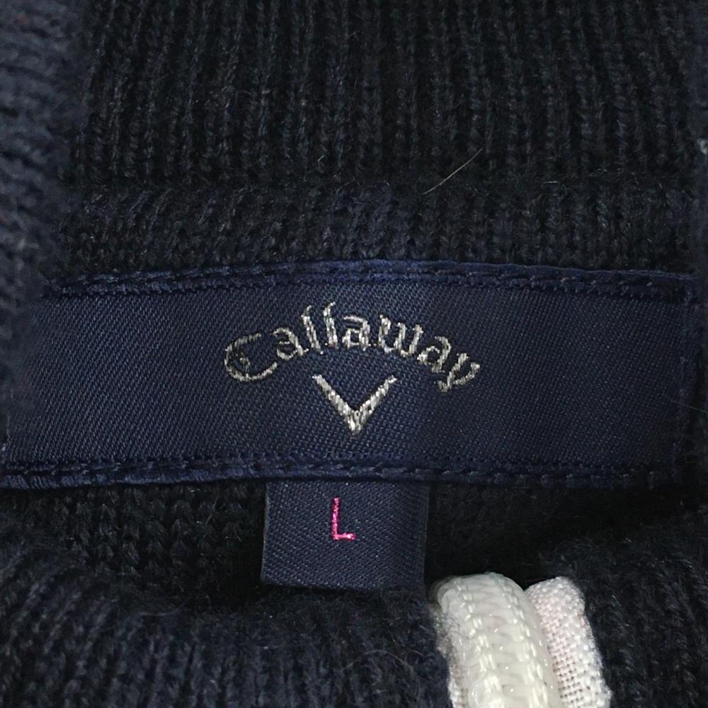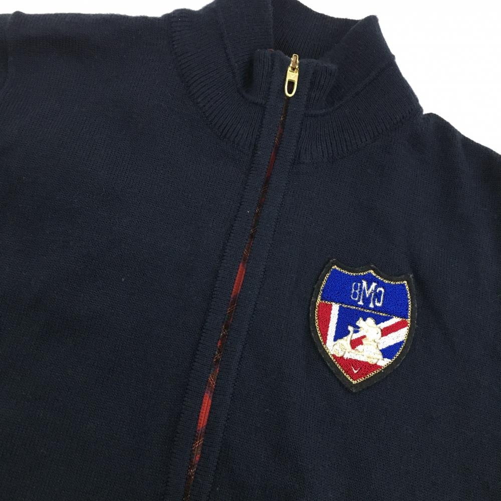 キャロウェイ ニットジャケット ネイビー×白 胸元ワッペン 袖ロゴ刺しゅう ダブルジップ レディース L ゴルフウェア Callaway