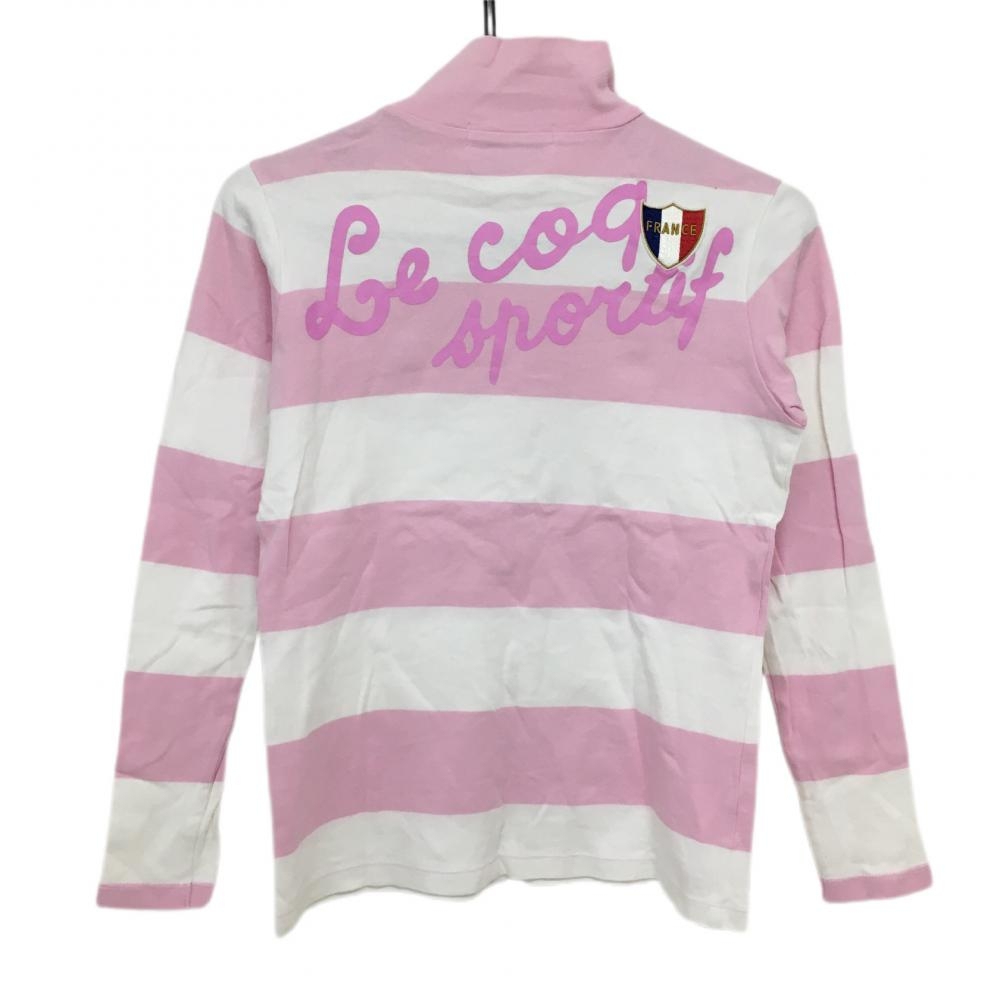 ルコック 長袖ハイネックシャツ ピンク×白 ボーダー柄 ロゴ刺しゅう レディース S ゴルフウェア le coq sportif