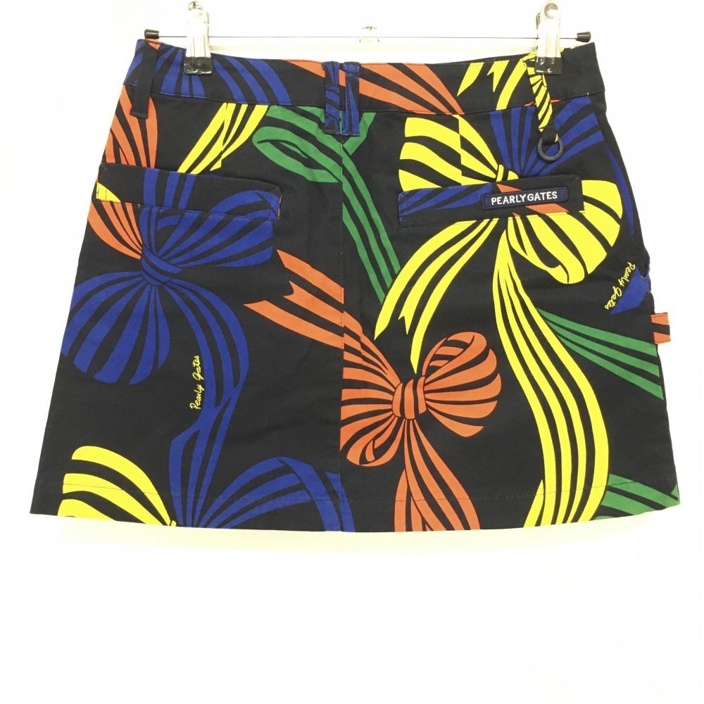 【新品】パーリーゲイツ スカート ネイビー×マルチ リボン柄 裏地30周年ニコちゃん レディース 1(M) ゴルフウェア PEARLY GATES