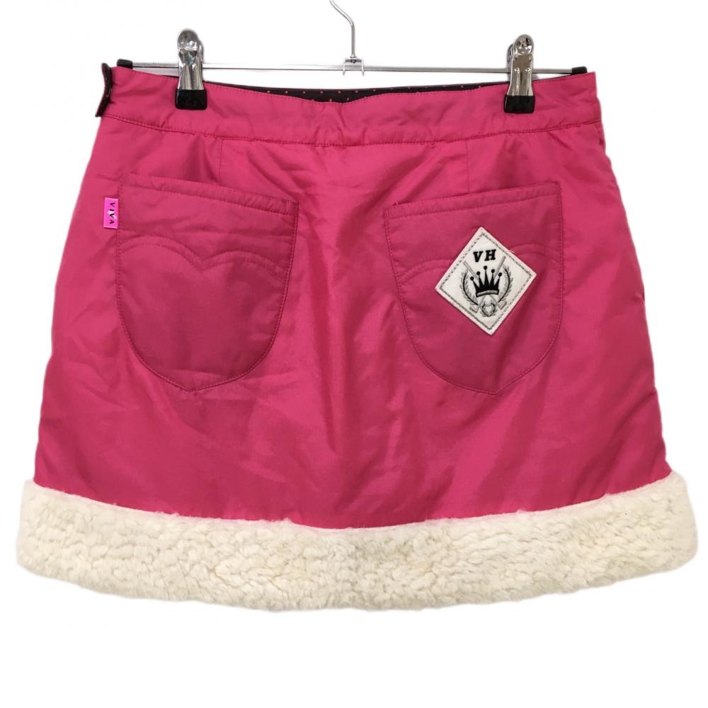 【超美品】ビバハート 中綿スカート ピンク×白 裾ボア 内側インナーパンツ起毛 レディース 40 ゴルフウェア VIVA HEART