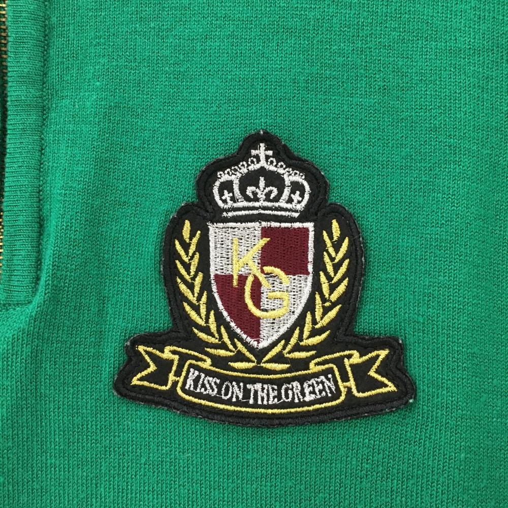 【美品】キスオンザグリーン ハイネックセーター グリーン ワッペン ハーフジップ レディース F ゴルフウェア kiss on the green