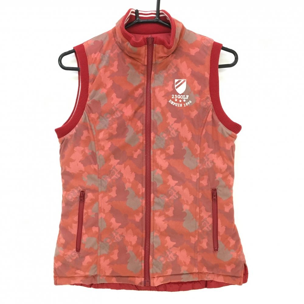 【美品】23区ゴルフ 中綿リバーシブルベスト レッド×白 シンプル×迷彩 カモフラ レディース 0(S) ゴルフウェア 23区