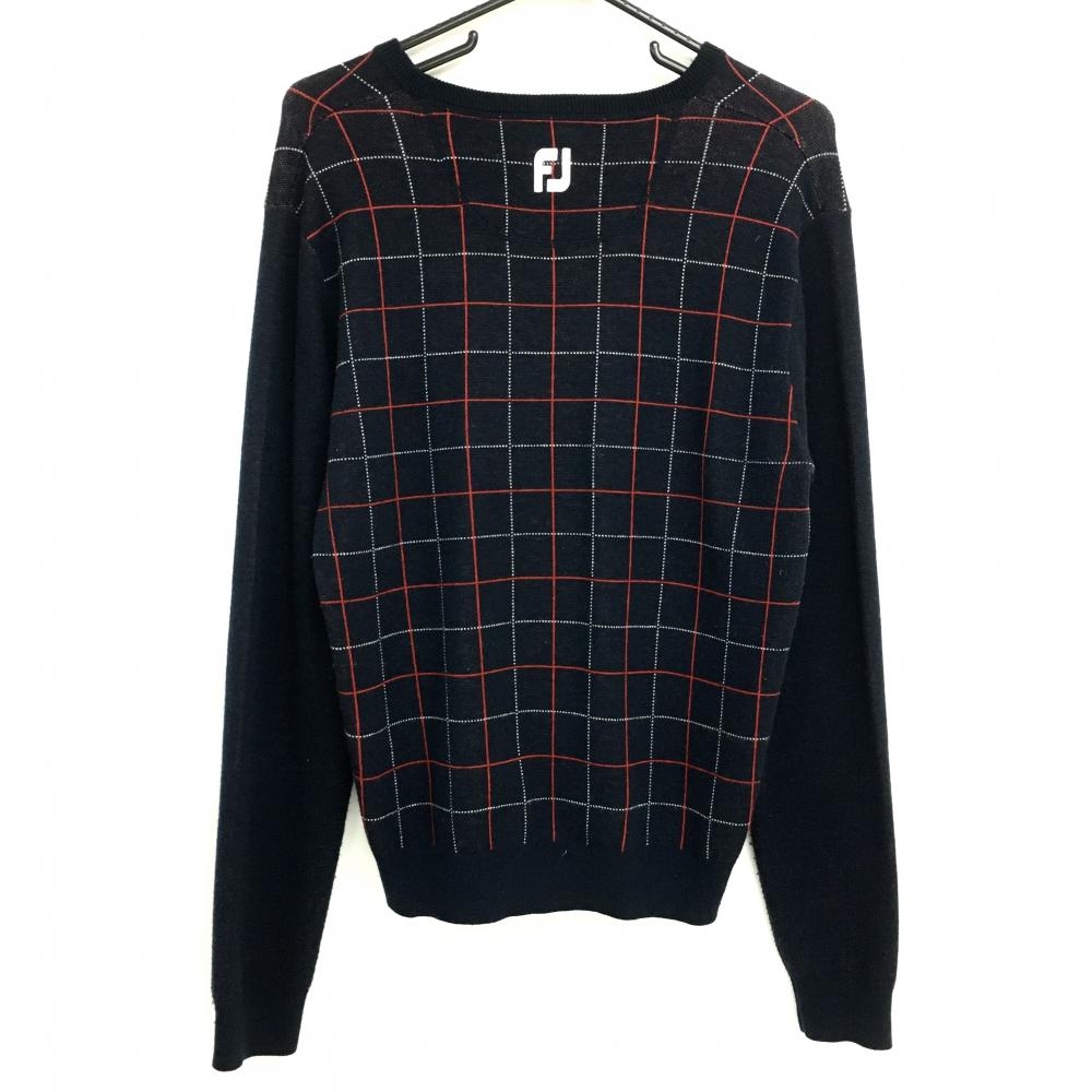 フットジョイ セーター ネイビー×レッド Vネック 身頃格子 メンズ M ゴルフウェア FootJoy