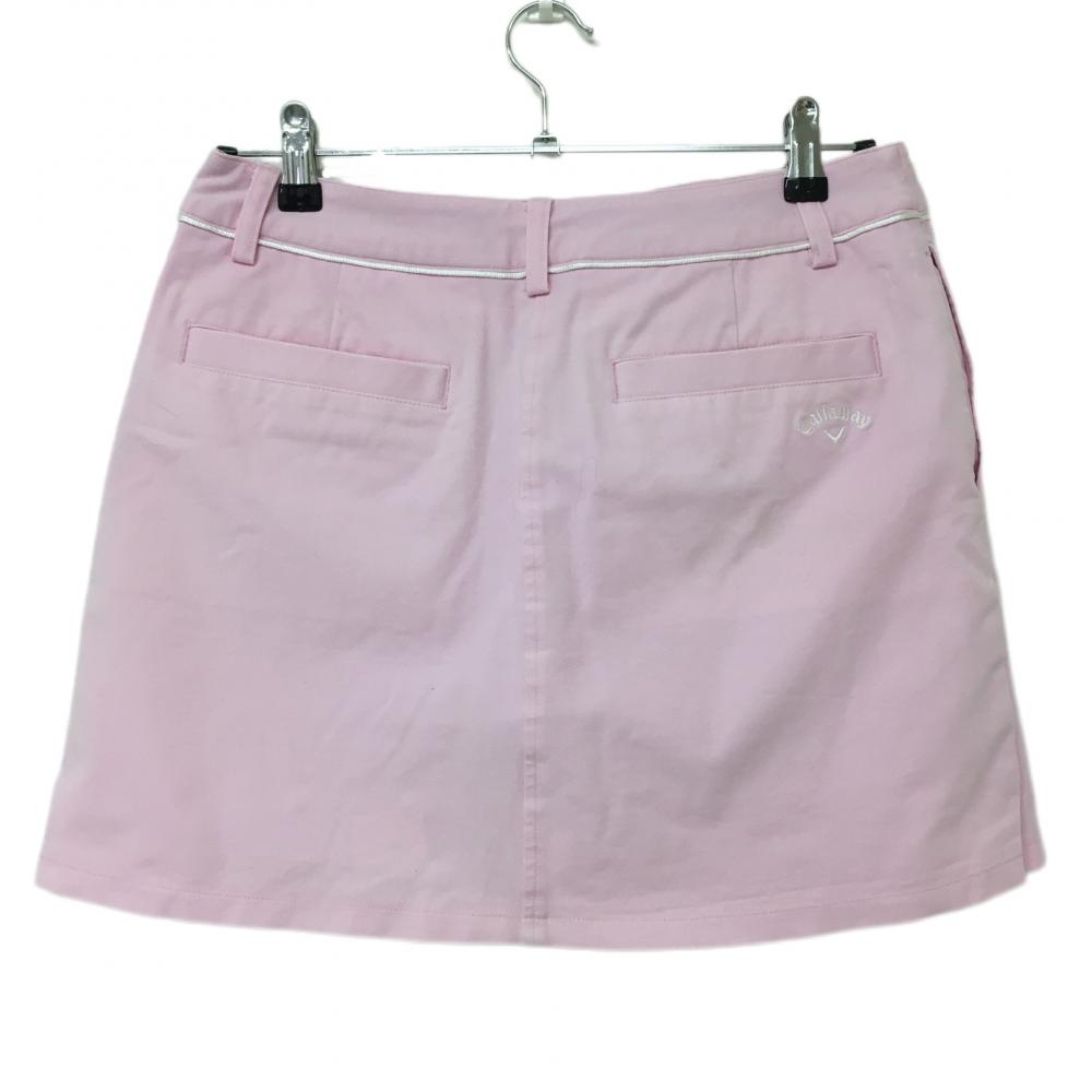 キャロウェイ ラップキュロットスカート ライトピンク×白 バックロゴ刺しゅう レディース L ゴルフウェア Callaway