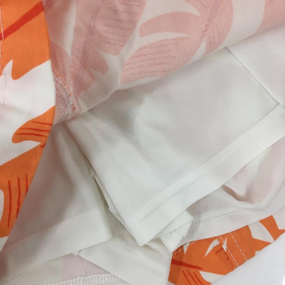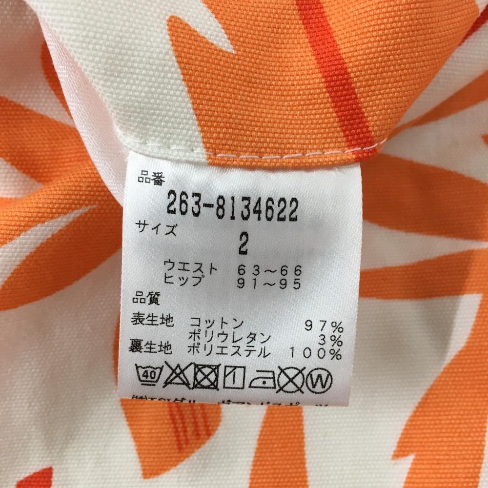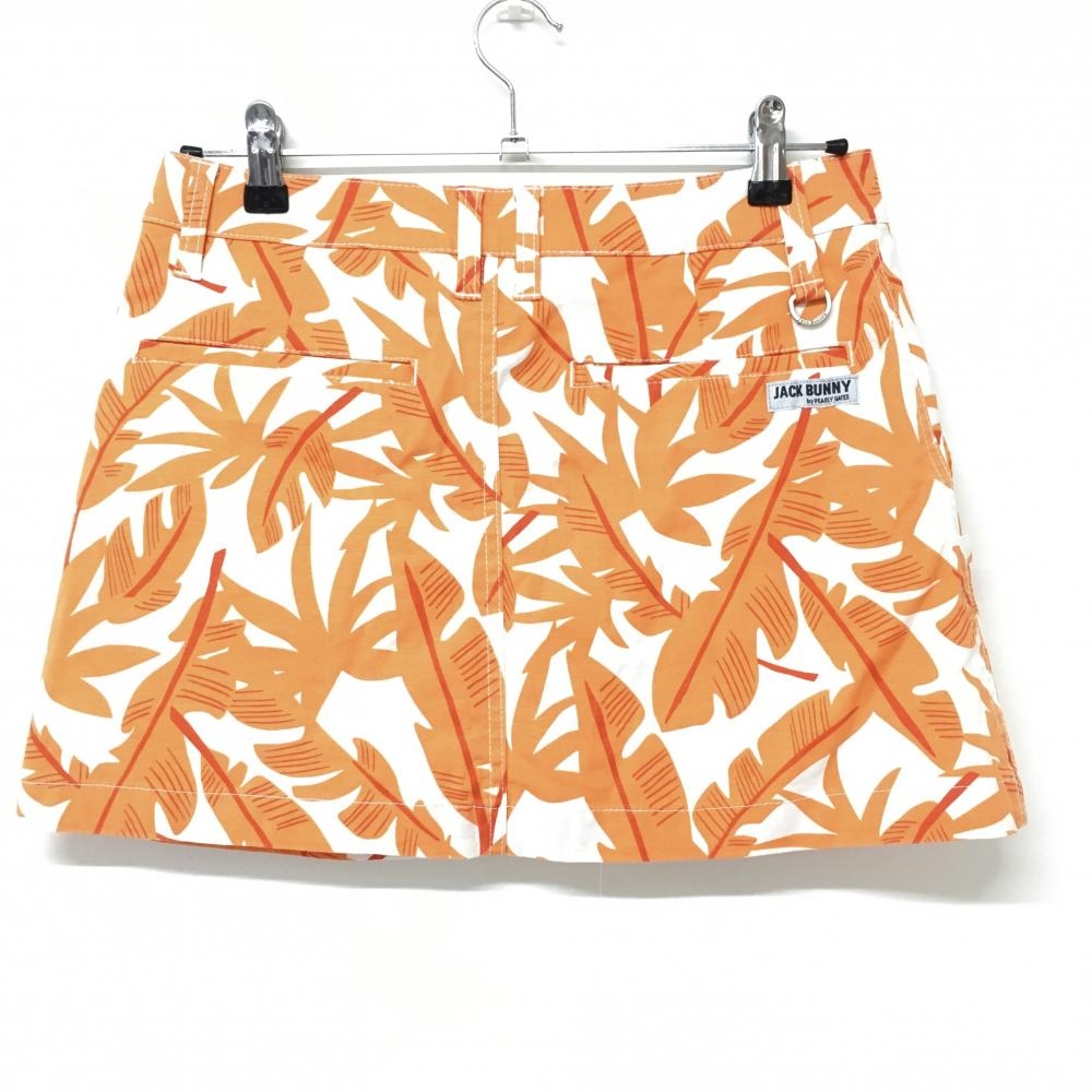 【超美品】ジャックバニー スカート アイボリー×オレンジ リーフ総柄 ストレッチ レディース 2(L) ゴルフウェア Jack Bunny