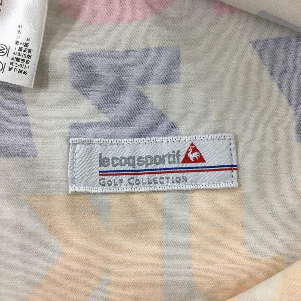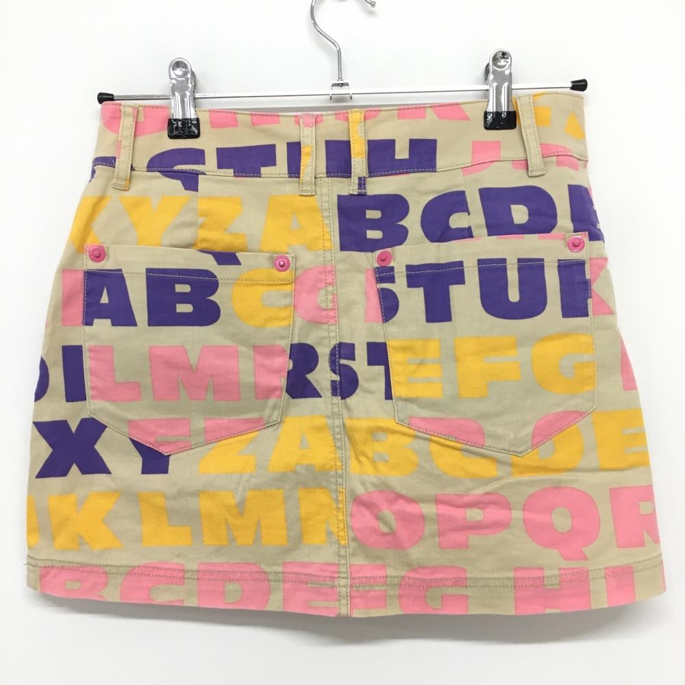 ルコック スカート ベージュ×ピンク 英文字総柄 レディース 7 ゴルフウェア le coq sportif