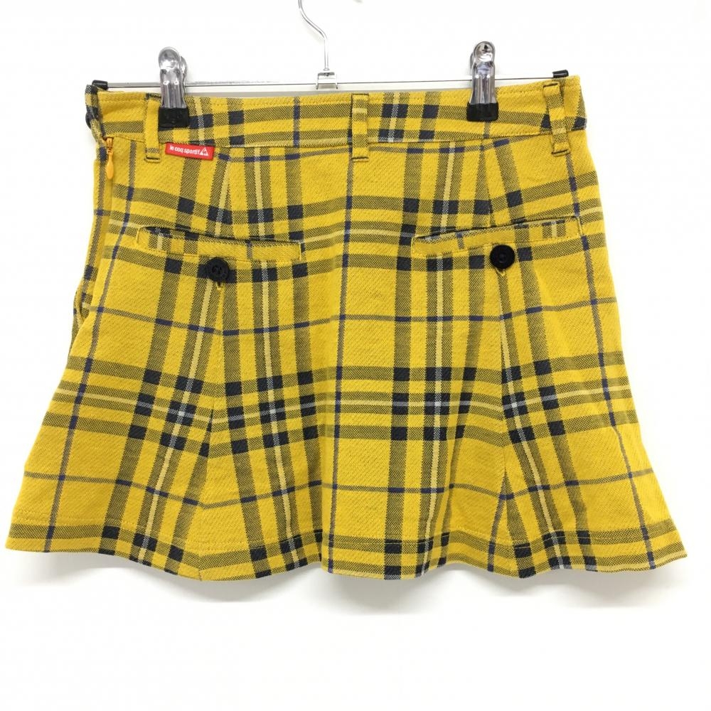 【超美品】ルコック スカート イエロー×ネイビー チェック柄 総柄 レディース 7 ゴルフウェア le coq sportif