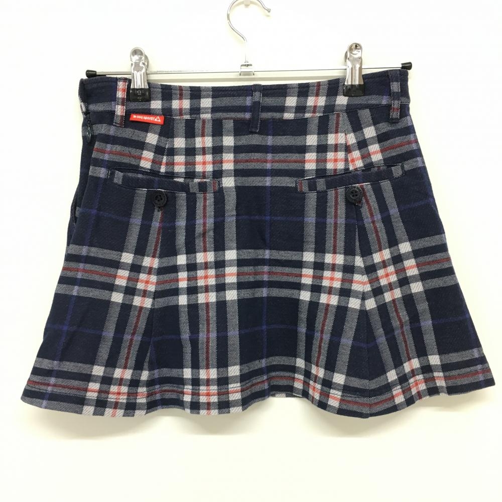 【美品】ルコック スカート ネイビー×白 チェック柄 総柄 レディース 7 ゴルフウェア le coq sportif