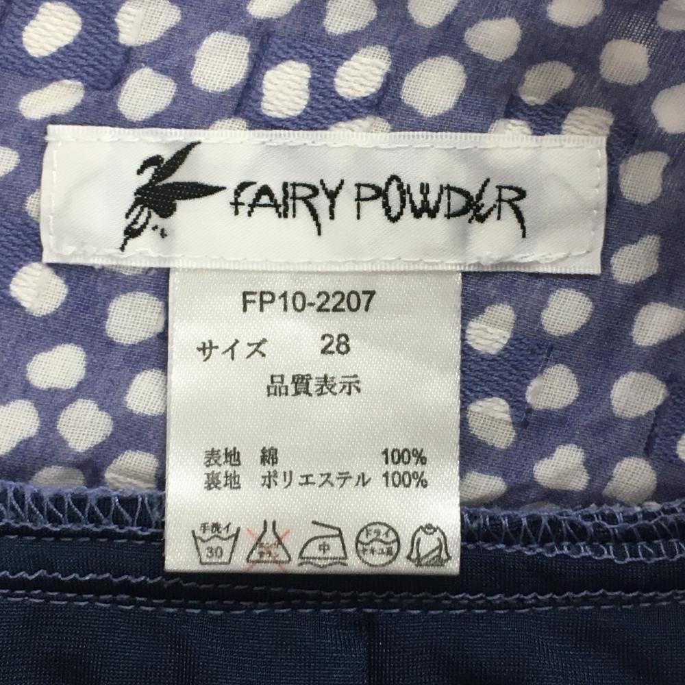 【超美品】フェアリーパウダー キュロットスカート ライトネイビー×白 総柄 薄手 裏地付 レディース 28 ゴルフウェア FAIRY POWDER
