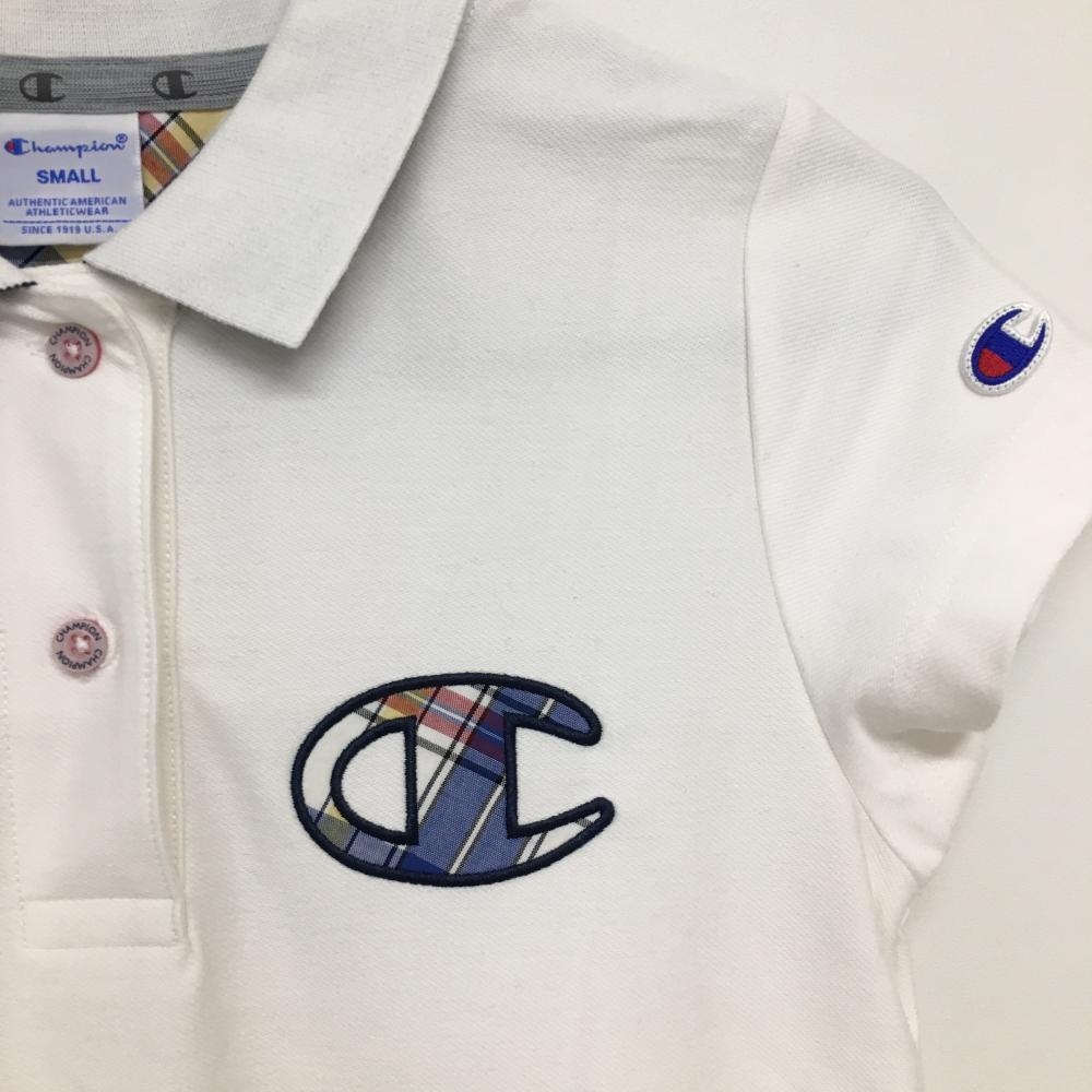【超美品】チャンピオン 半袖ポロワンピース 白×ネイビー ウエスト紐 レディース SMALL ゴルフウェア Champion