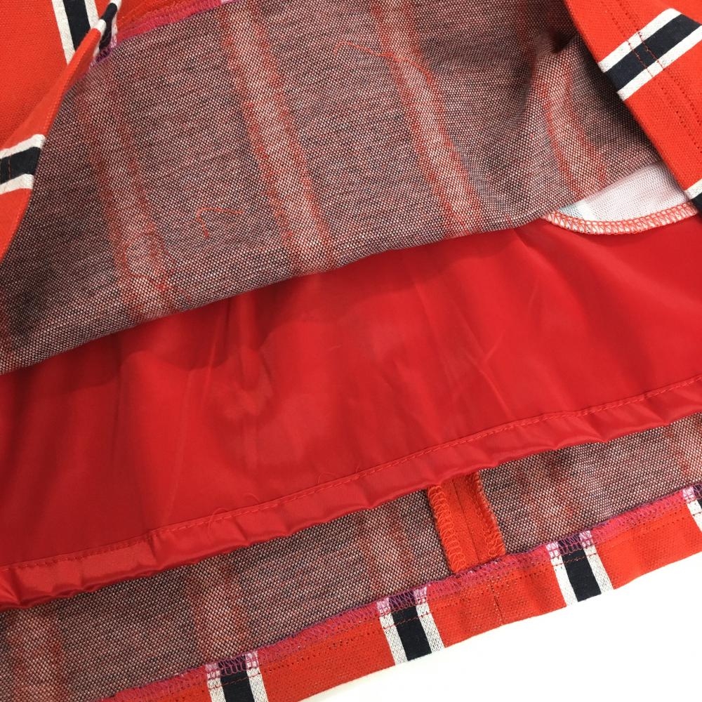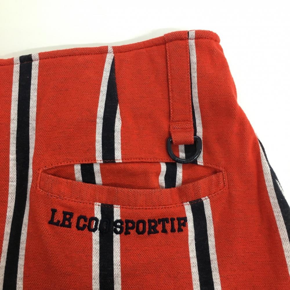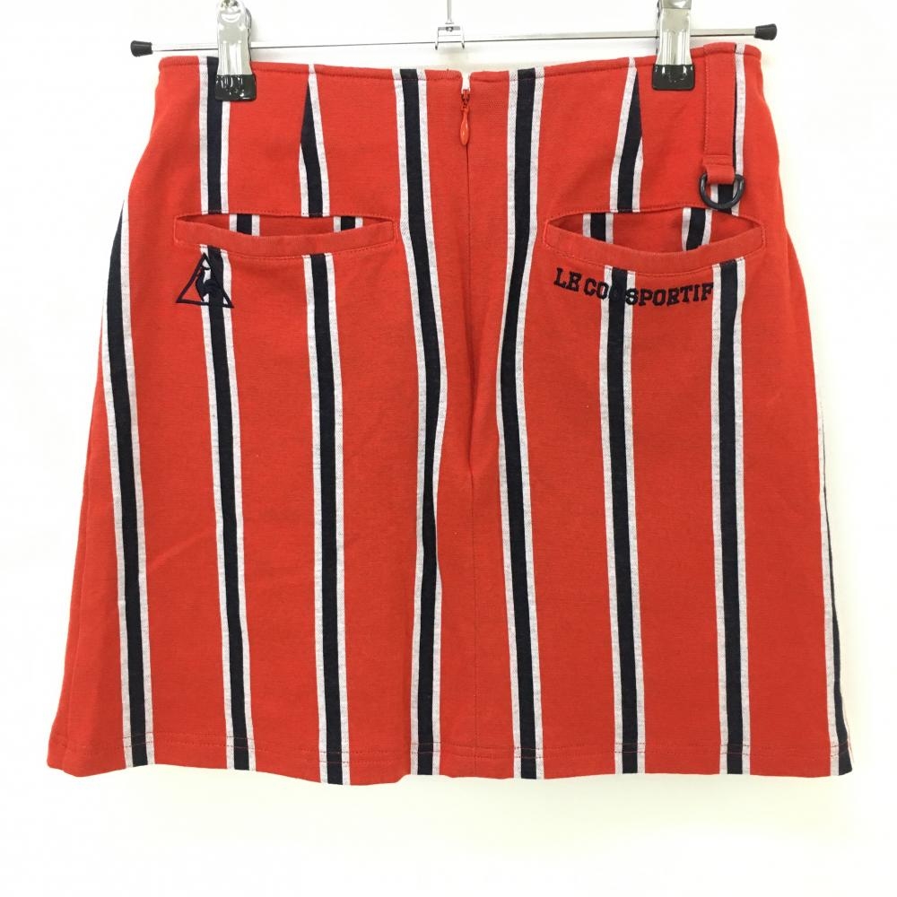 【超美品】ルコック スカート オレンジレッド×ネイビー ストライプ 裏地付き ストレッチ レディース 7 ゴルフウェア le coq sportif