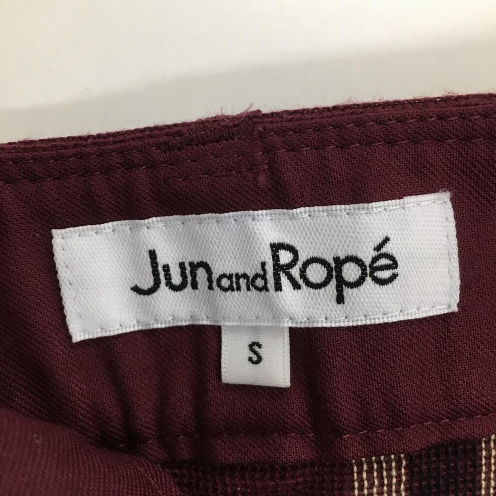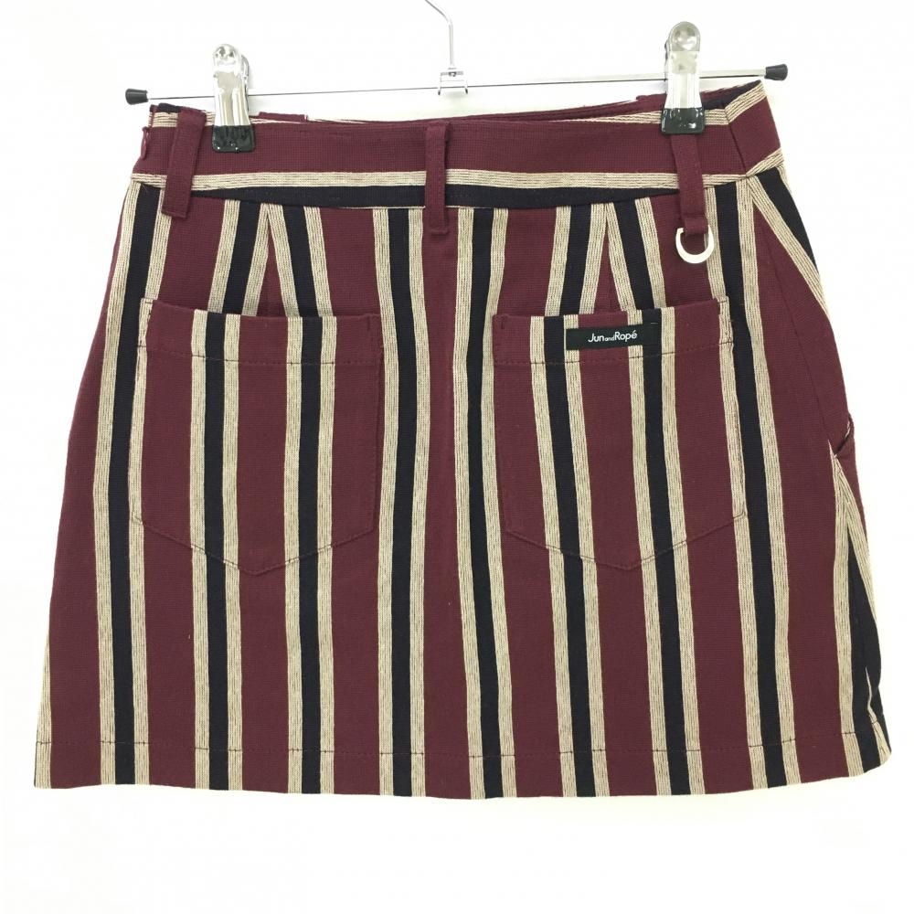 【超美品】ジュンアンドロペ スカート ボルドー×ネイビー×ベージュ ストライプ 金ボタン レディース S ゴルフウェア JUN&ROPE