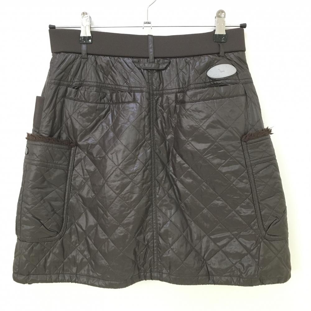 【美品】アダバット 中綿スカート ブラウン キルティング バックロゴ 蓄熱インナーパンツ付き レディース 38(M) ゴルフウェア adabat