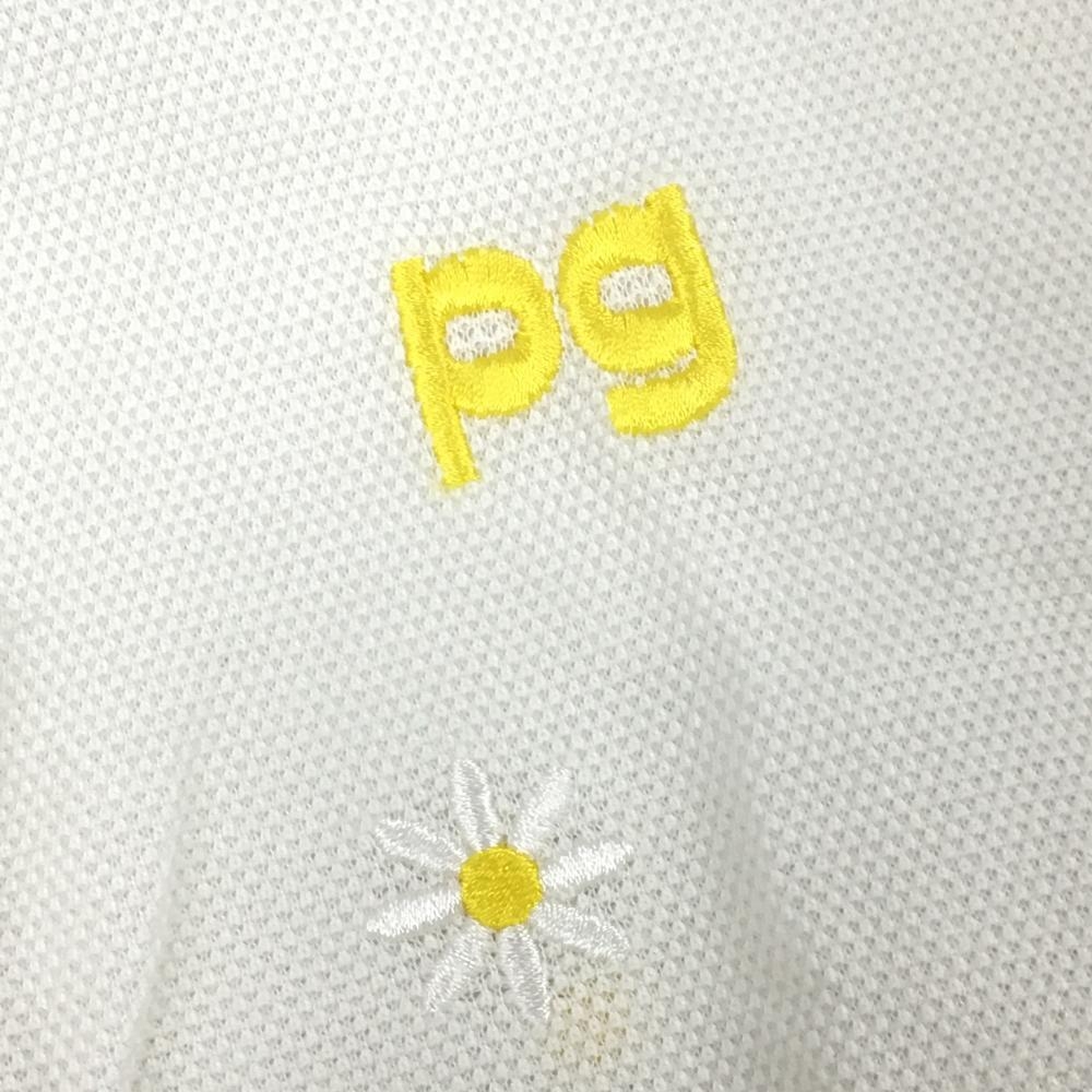 パーリーゲイツ 半袖ポロシャツ 白×イエロー 花刺しゅう 総柄 レディース 1(M) ゴルフウェア PEARLY GATES
