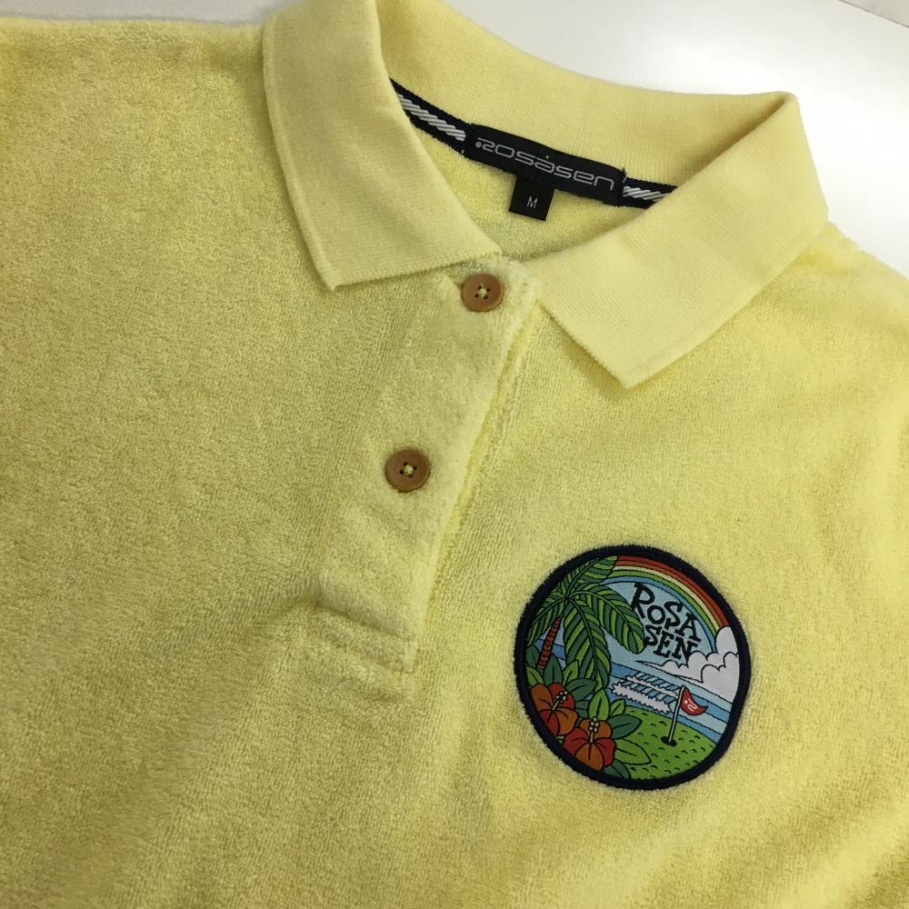 【超美品】ロサーセン 半袖ポロシャツ イエロー パイル地 ワッペン レディース M ゴルフウェア Rosasen